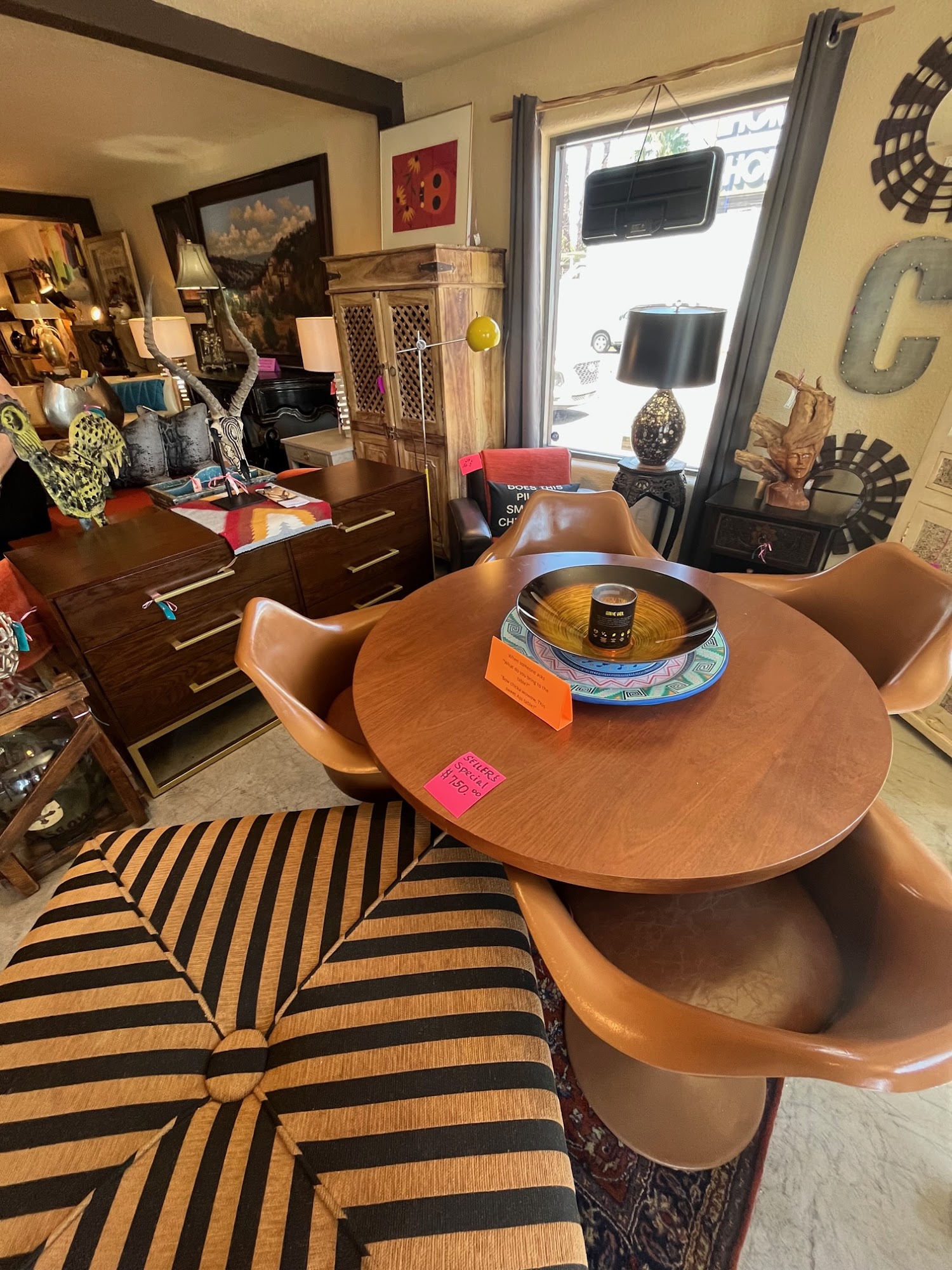 So many unique vintage pieces. Reasonably priced for vintage furniture. Friendly inviting place. Check out the fridge in the back for complimentary water and ice cream. What a thoughtful gesture for guests.