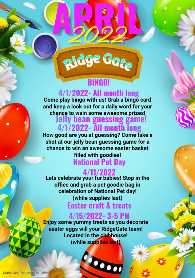 The office staff is always so kind! They plan awesome community activities and are very responsive. I love their friendly demeanor and willingness to help :) thank you RidgeGate staff!