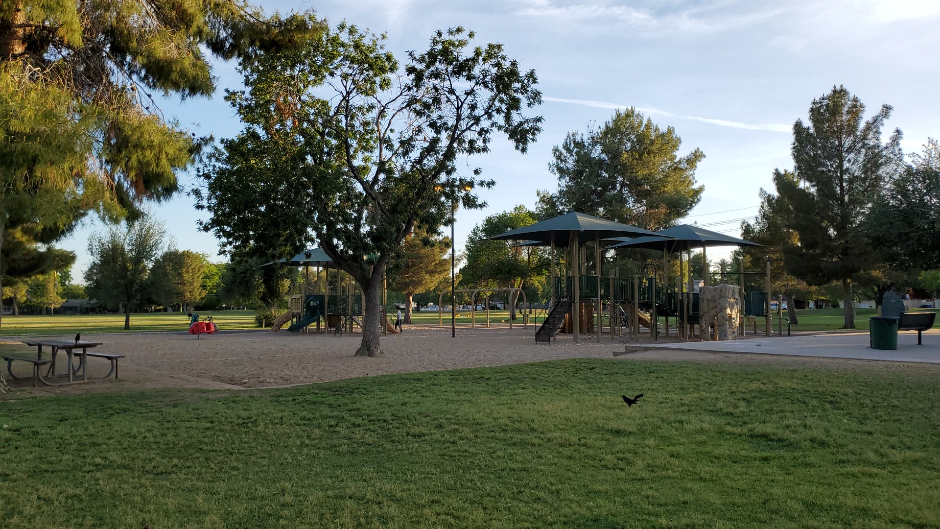 Very nice neighborhood park. Clean and the perfect size for my 3 year old. Huge green space and rarely crowded. Totally worth the extra 10 minutes drive.