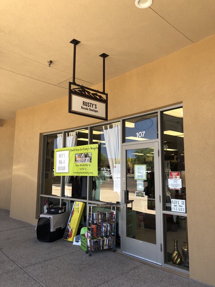 Rusty’s Resale Boutique helps support the daily operations of Rusty’s Angels Sanctuary a senior dog rescue located in New River, AZ. All proceeds from our Resale Boutique goes directly to helping provide care for our senior dogs that are either looking for their new forever home or retiring at the Sanctuary. We are a non-consignment, a volunteer-based thrift shop that sells clothing, houseware, accessories, jewelry, home decor, artwork, books, and more! There are many ways you can support; by donating your new or gently used items, shopping at our store, or volunteering your time sorting and tagging. Anything donated that we cannot re-sell, we will pay it forward to Big Brother and Big Sister. #seniordogs #thriftstore #dogadoption