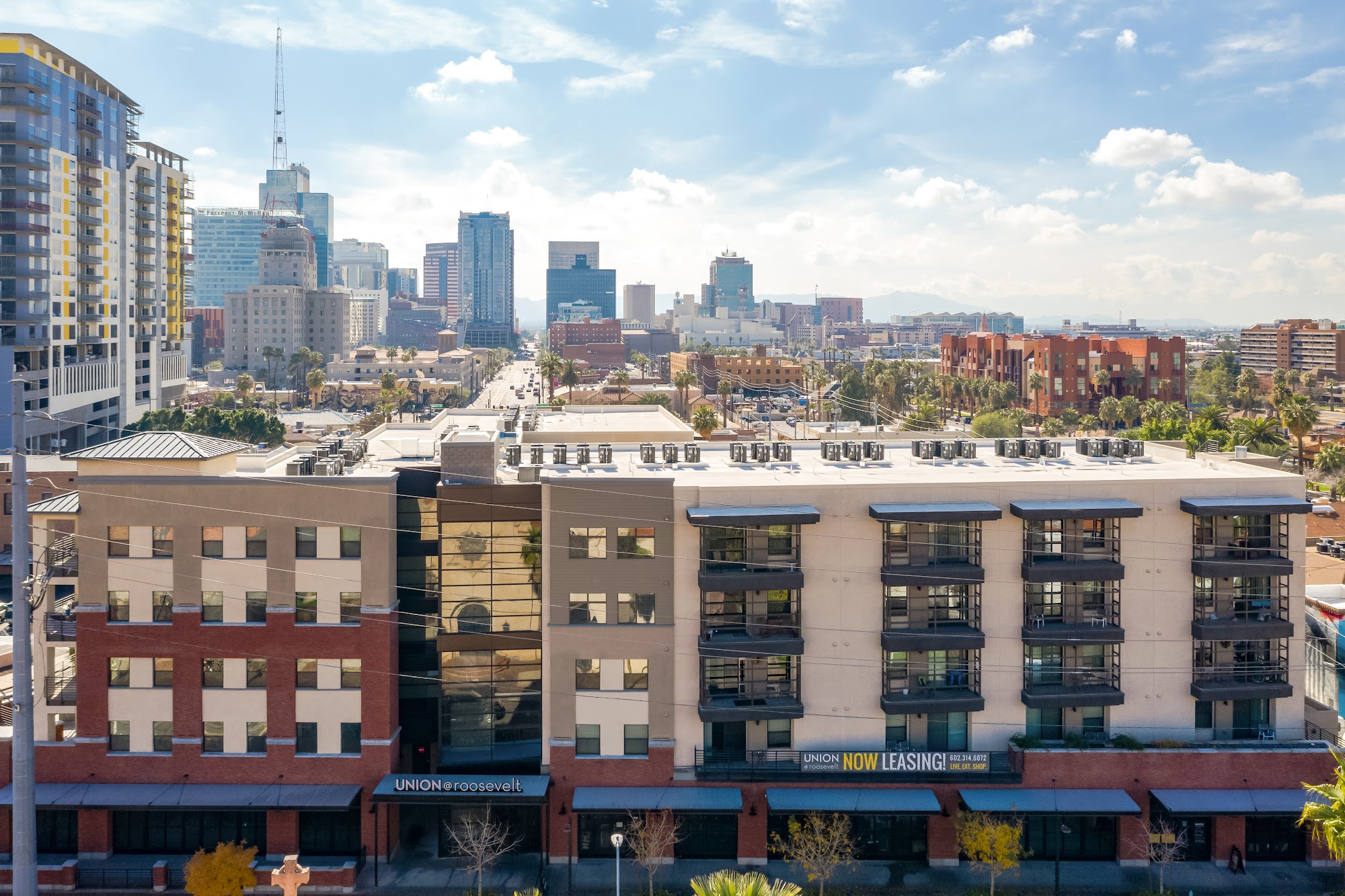 Union @ Roosevelt sits in the heart of the highly revered Downtown Phoenix Art District! We offer unbeatable convenience with the Roosevelt Light Rail Station across the street, and food/beverage and entertainment just footsteps away! We proudly offer secured underground parking and building entry, updated stainless steel appliances in all of our apartment homes, package concierge lockers, and inviting outdoor courtyard space equipped with BBQs for residents' enjoyment. Offering studio, one, and two bedroom apartment homes in an ideal Phoenix location. Tour today!