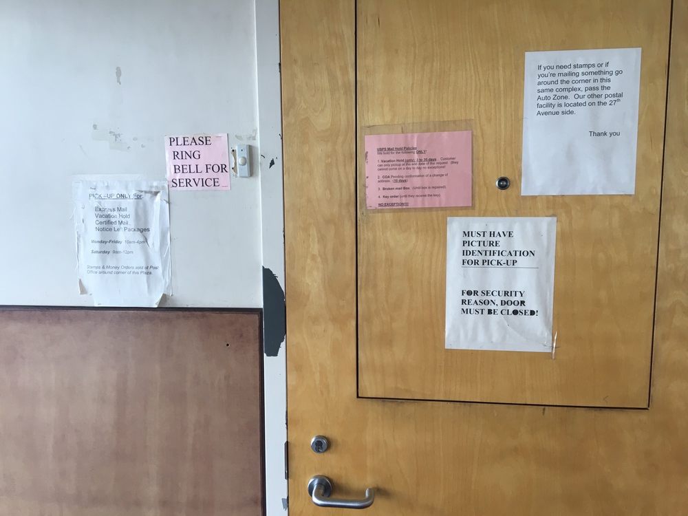 The main entrance does not hand out Registered letter, Certified letter or package pick ups however, they are so helpful and tell you exactly where you have to go (Which is in the same plaza) so you can pick up these items. They are quick, helpful, and very are always willing to assist.