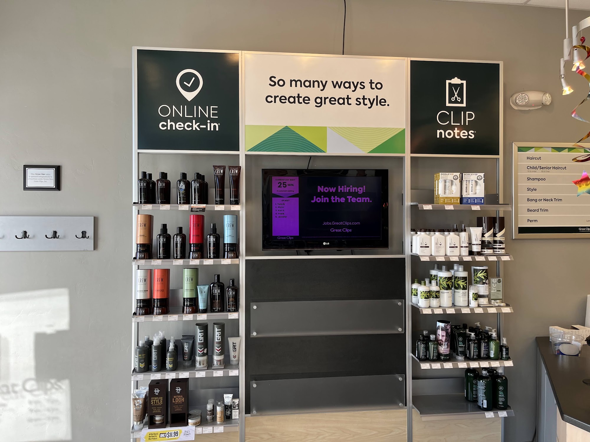 Great Clips in Prescott Valley offers affordable haircuts for men, women, and children, with no appointments necessary. They provide a range of services such as haircuts, beard trims, bang trims, and shampooing. The salon is open during evenings and weekends, making it convenient for customers with busy schedules. They have a walk-in policy and also offer an online check-in system to skip the wait. Recent reviews mention a friendly environment with very low prices. Customers appreciate the friendly staff and the quick, efficient service. One reviewer praised the stylist for giving a good haircut, with options for clippers or scissors, though they noted that the results were not perfect and intended to return to their regular place. Another customer highlighted that checking in online was accurate, and they received a text when it was their turn. They also appreciated the stylist’s good questions and overall satisfaction with the haircut. Additionally, a customer praised Laura for giving a Bob haircut that was easy to care for, and mentioned that the check-in process was simple, with the staff being nice. Overall, Great Clips in Prescott Valley maintains a friendly atmosphere, offers affordable prices, and provides flexible scheduling options, making it a convenient choice for hair care needs.