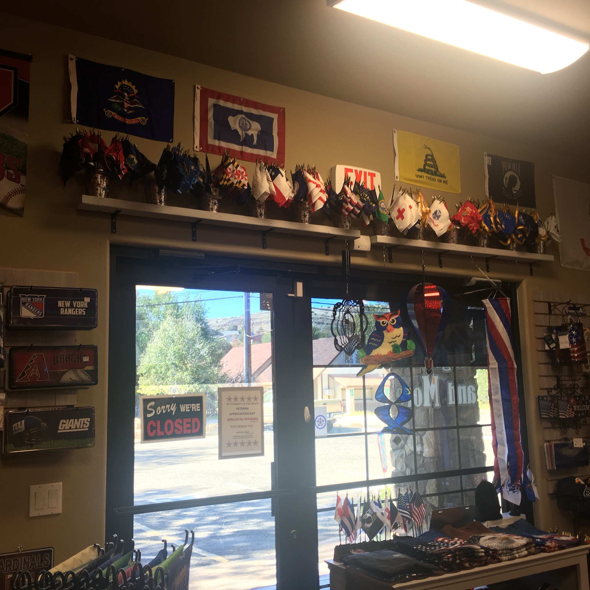 Flags Galore & More is a locally-owned and operated retail store that specializes in a wide range of flags, flagpoles, and patriotic merchandise. Established as a family-owned business, the store offers a great selection of high-quality American-made US, military, and state flags, as well as a variety of house flags, garden flags, and other patriotic decor. Customers praise the store's excellent customer service, with the friendly and knowledgeable staff providing personalized assistance to help customers find the perfect items. The staff is described as being ready to help customers locate specific products or even special order items upon request. The store is also commended for its patriotic focus, carrying primarily American-made goods to support domestic manufacturing. In addition to flags, Flags Galore & More offers a diverse selection of products, including wind spinners, kites, wind socks, military and patriotic apparel and decals, and a range of garden and home decor. The store's inventory is regularly updated, ensuring customers can find the latest and most relevant items. Despite its small exterior, the store is described as having a large and well-stocked interior that allows customers to browse a wide array of options. While the prices may be slightly higher than discount retailers, customers feel the quality and support for American-made products is worth the investment. Overall, Flags Galore & More is praised as a local gem, offering a unique and patriotic shopping experience with outstanding customer service and a comprehensive selection of flags, flagpoles, and related merchandise.