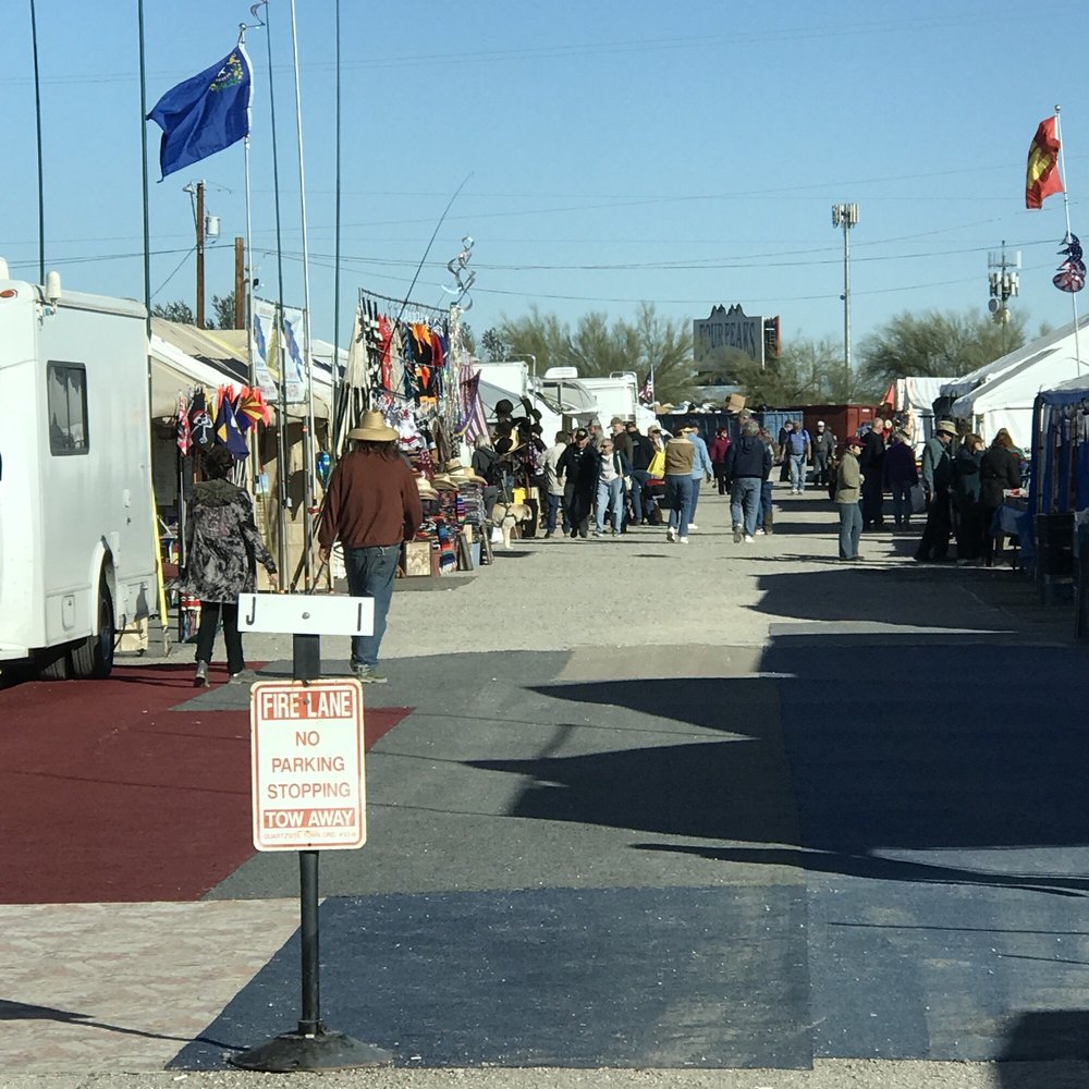The Quartzsite Improvement Association (QIA) is the oldest non-profit in Quartzsite and is all volunteer supported. It is an awesome place with a very friendly staff. It is the location of the annual Pow Wow rock, gem and mineral show in the third week of January, featuring over 500 vendors from all over the world with rocks, minerals, turquoise, fossils, beads, and meteorites. The organization hosts many winter activities for those looking to avoid ice and snow. These include various music concerts, great live entertainment, music jams, bingo, dances, arts and crafts, exercise classes, and off-roading. There is also a Gold Show to learn how to find gold nuggets. It is a great place to winter in an RV park or boondock on the BLM desert land, with free parking and low cost for RVs. Visitors highly recommend this place, noting it is a great opportunity and that you are missing out if you stay in Quartzsite without visiting.