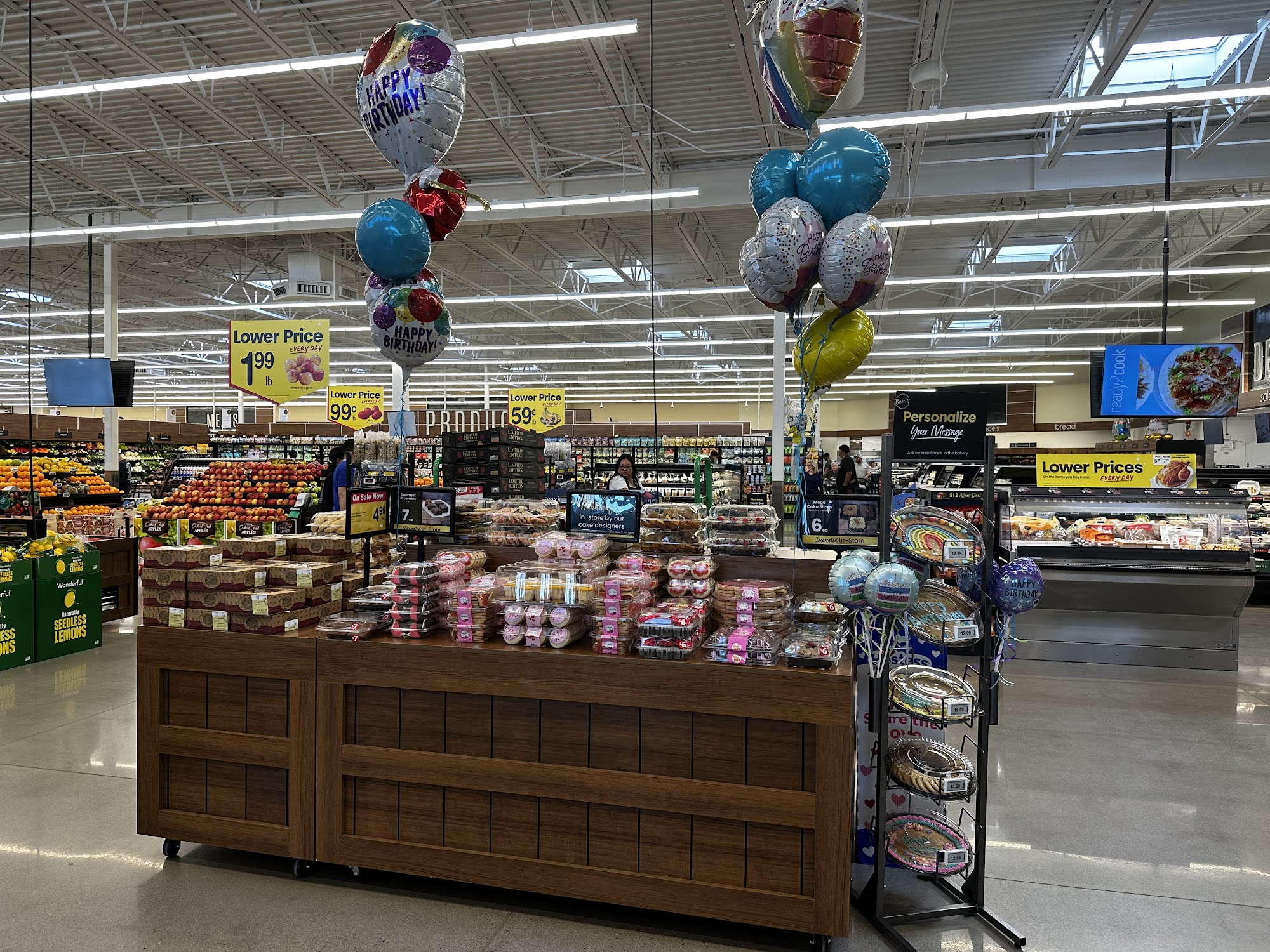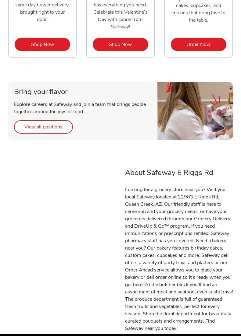 Safeway is a grocery store with a friendly staff. The store has a bakery with birthday cakes, custom cakes, cupcakes, and more. The deli offers party trays and platters, and an Order Ahead service is available. The butcher block has an assortment of meat and seafood, including sushi trays. The produce department has a great variety of items. The staff is super friendly and helpful. The store is clean and organized with great selections. It also has a pharmacy for immunizations and prescriptions. Safeway offers Grocery Delivery and DriveUp & Go program for convenient shopping. The store has a wide range of prepared food options, including fresh made salsa and salads.