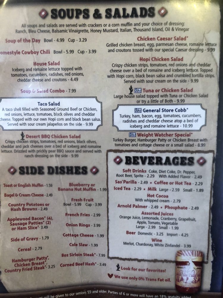 Enjoyed the Breakfast!! The ladies at the counter were very friendly and it felt as good as homemade apple pie.. nice big fireplace nice souvenirs. I was visiting Arizona for the first time from Texas yes believe it or not lol.. but overall everyone was amazingly friendly..