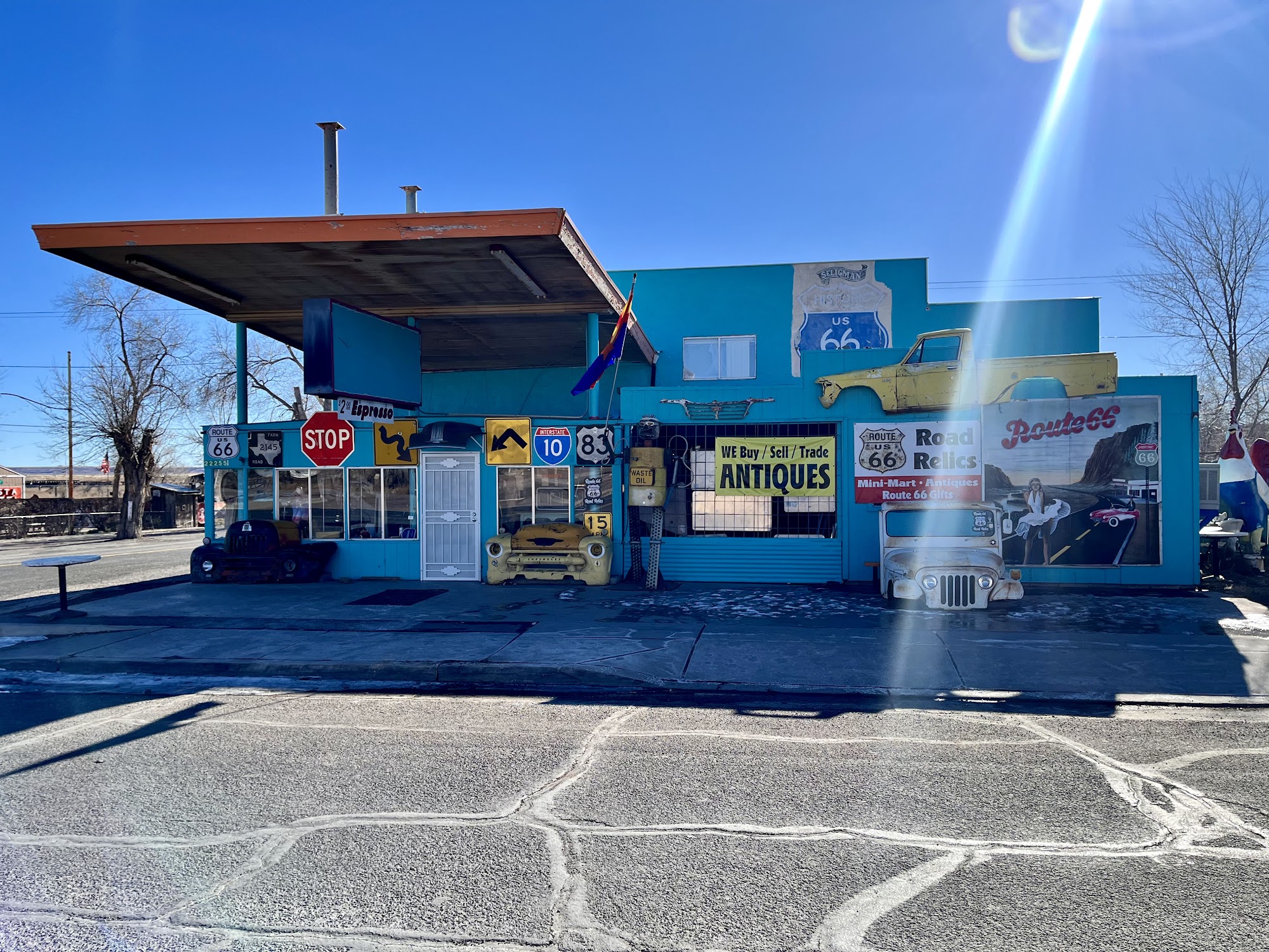 Antique and Route 66 Gift shop located on Historic Route 66 in Seligman Arizona. Howdy, I'm Big Mike, a travel enthusiast & creator focused on promoting Route 66 & Arizona. My passion lies in showcasing the unique towns, fascinating places, interesting people, & businesses of Route 66. I own Route 66 Road Relics in Seligman AZ. Howdy, From Big Mike Welcome to Route 66 Road Relics, located on Historic Route 66 in Seligman, Arizona. My wife Amanda and I are proud owners of this store. We specialize in selling antiques and gifts inspired by the charm of Route 66. With over 20 years of experience in buying and selling antiques, I have a passion for vintage items and anything related to Route 66. I also love to explore back roads, hunt for an