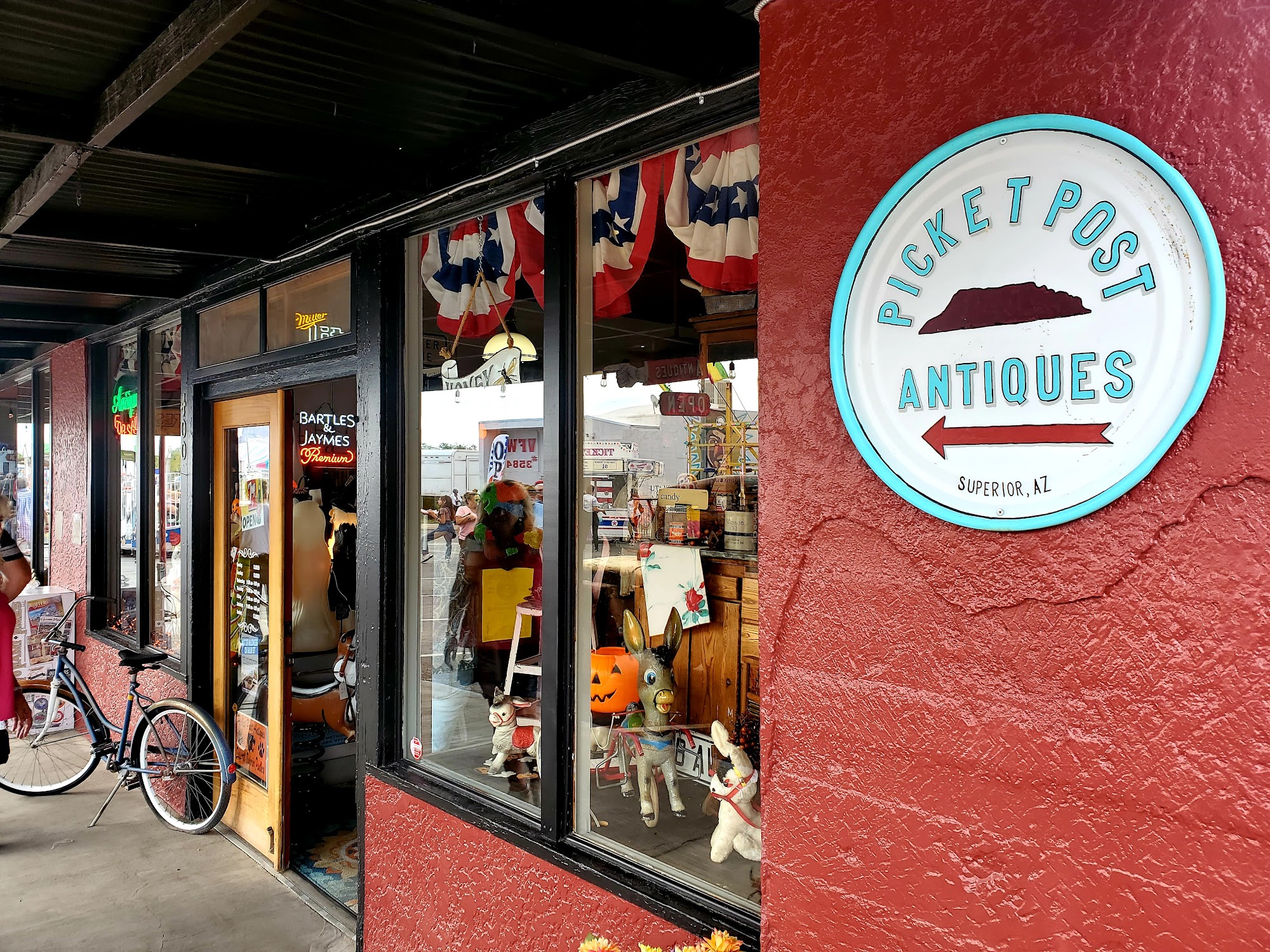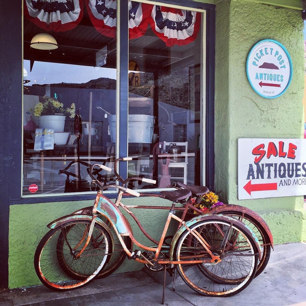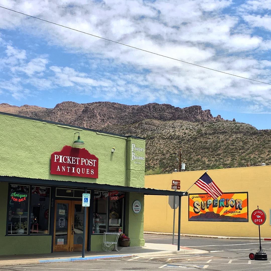 Picket Post Antiques is a lovely, clean, and organized little shop inside the 1917 Porters Building. It has a great variety of antiques and vintage items at good prices, from antique dresses to unique finds like an embroidered tablecloth. The friendly staff provides excellent service. Located just 45 minutes east of Mesa, it is a wonderful place that brings back memories and inspires return visits.