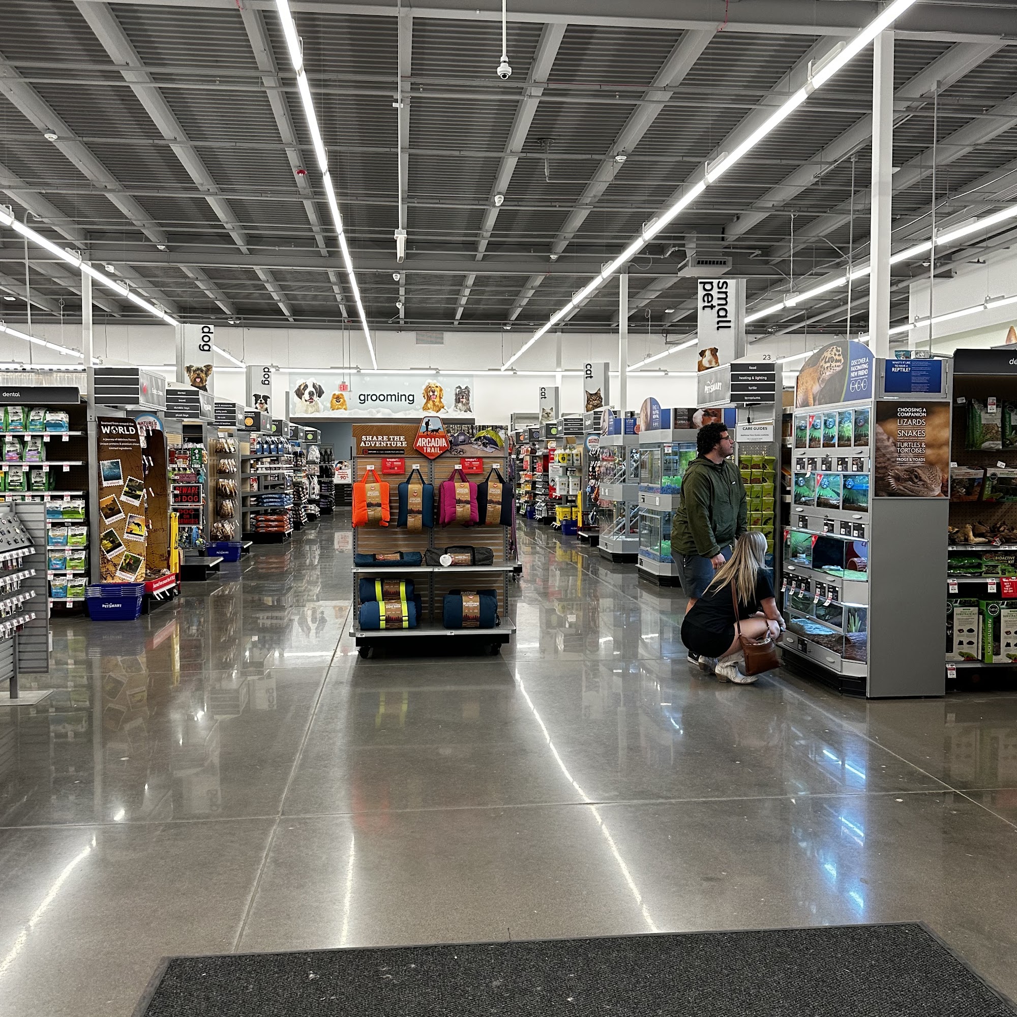 PetSmart is a large retailer offering a wide variety of pet supplies and services. They carry products for dogs, cats, birds, fish, reptiles, and small animals. Customers can shop online and pick up their orders at the store within two hours. Some locations also offer dog training, grooming, boarding, daycare, and pet adoption. The store is known for its friendly and helpful staff. Customers have praised employees for their assistance and knowledge, especially about specific pets like chameleons. The store is clean and well-stocked, and many appreciate that they can always find what they need. Pets are welcome in the store, and staff often give them attention and treats. While the checkout process might be slow at times, customers value the effort staff put into applying coupons. Overall, it is a go-to location for pet supplies, with a wide range of treats and health products available. However, some customers have noted that the grooming area could improve its atmosphere, as some groomers may seem unwelcoming.