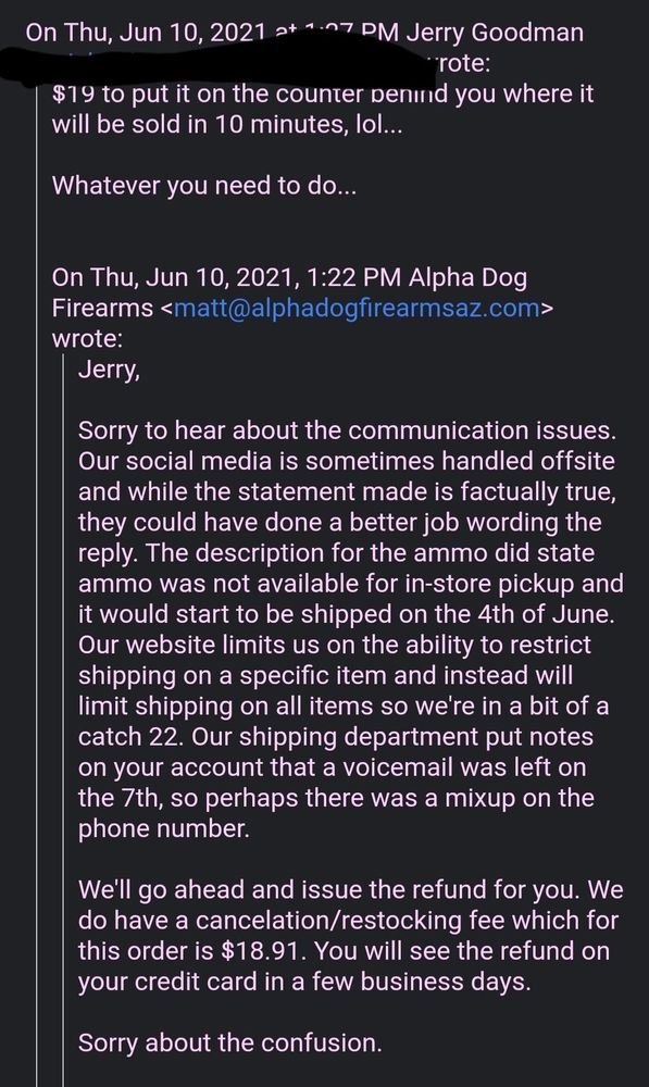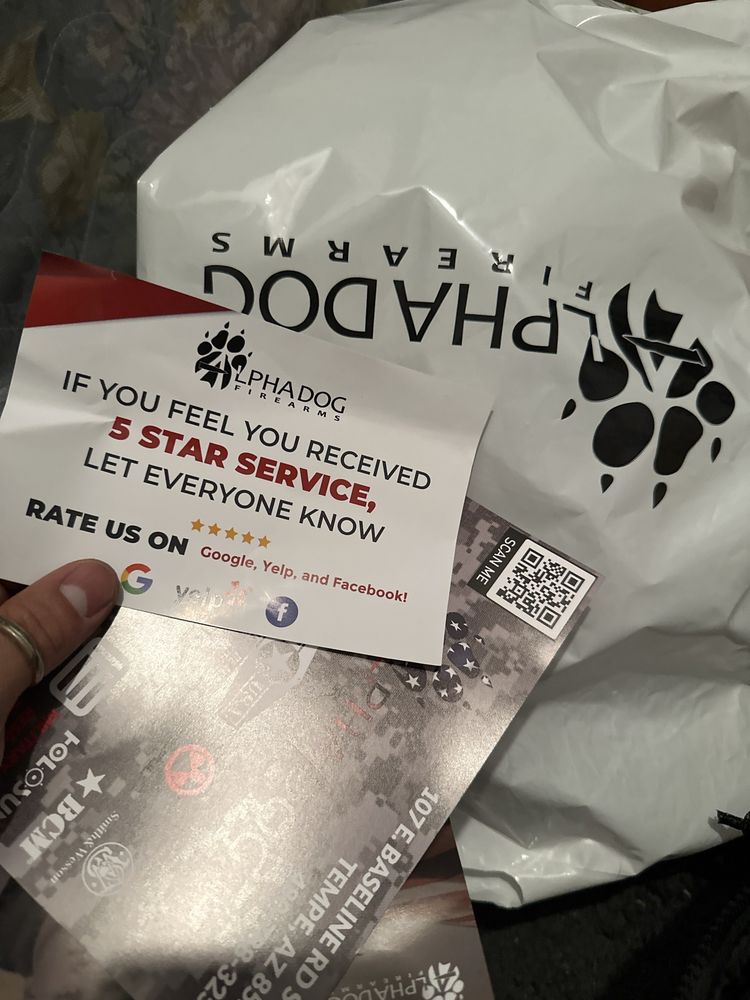Thank you to the two gentlemen who helped me with my purchase. I purchased a BCM complete lower receiver and i am very satisfied with it. Super friendly and very helpful guys over at Apha Dog Firearms. Would highly recommended coming here for your firearms and firearms accessories.