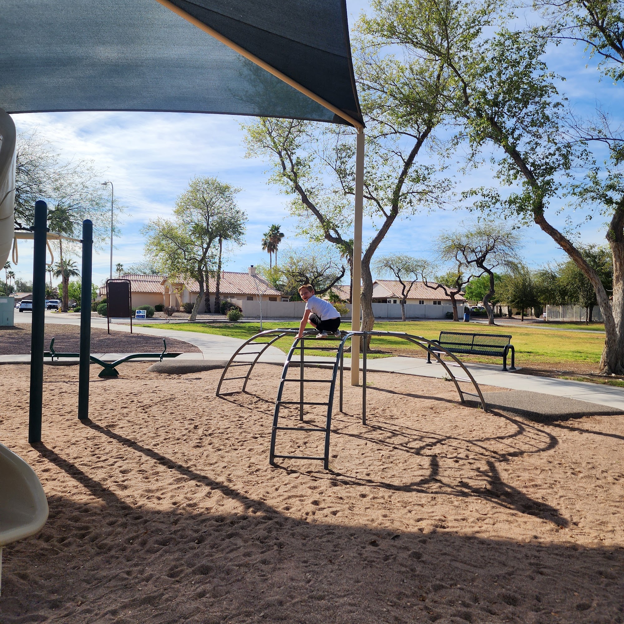 Campbell Park is a medium-sized park that offers a variety of amenities for visitors. The playground is well-maintained and clean, featuring a big play area that children can enjoy. The park also has a picnic area with tables, making it a great spot for a relaxing lunch or snack during a road trip. Additionally, the park is dog-friendly, allowing visitors to bring their furry companions along. While the park may have an older feel, it has been well-maintained by the City of Tempe, who recently sought public input on the park's future. Overall, Campbell Park provides a pleasant outdoor space for families, dog owners, and those looking to relax and unwind.