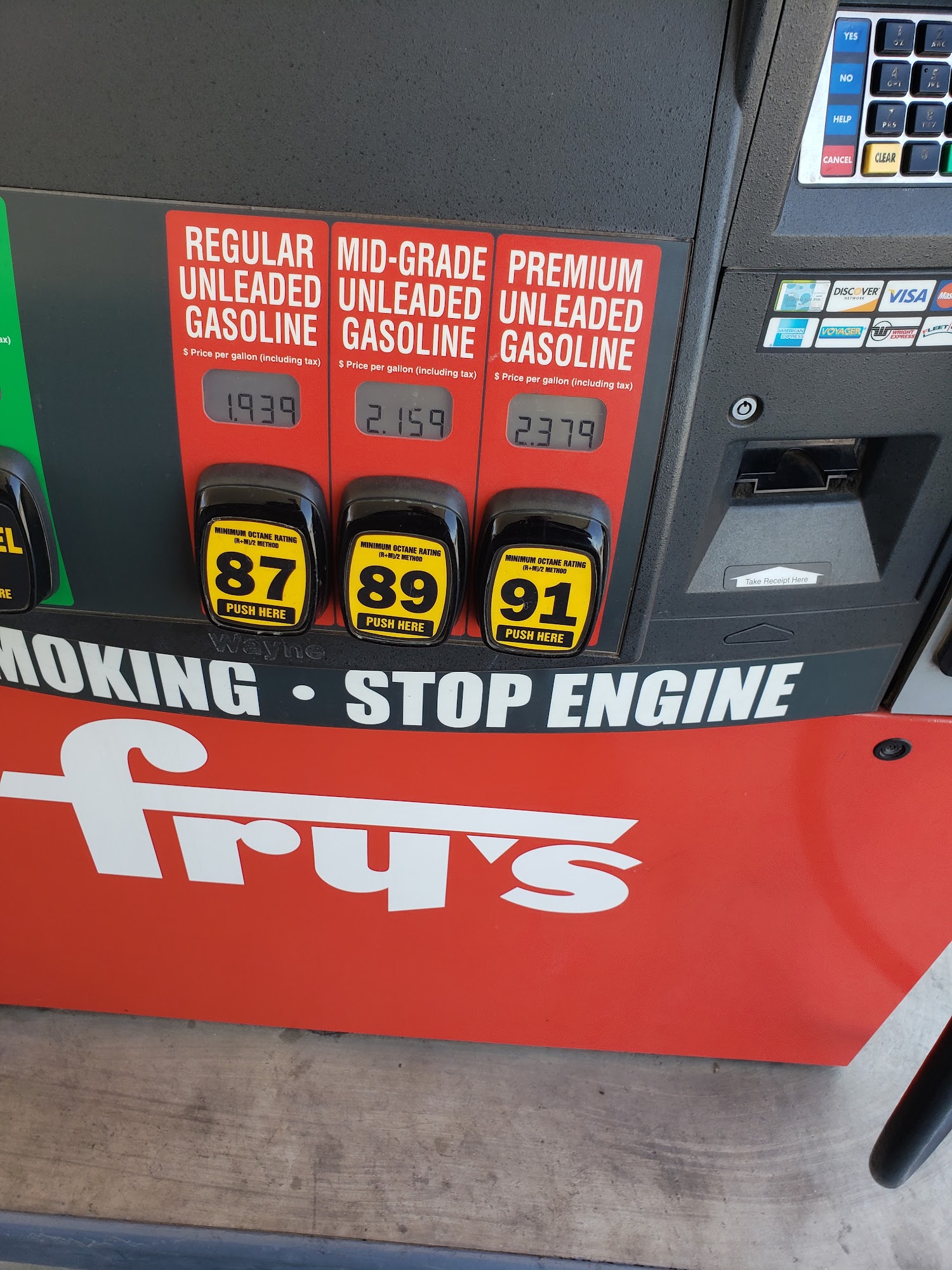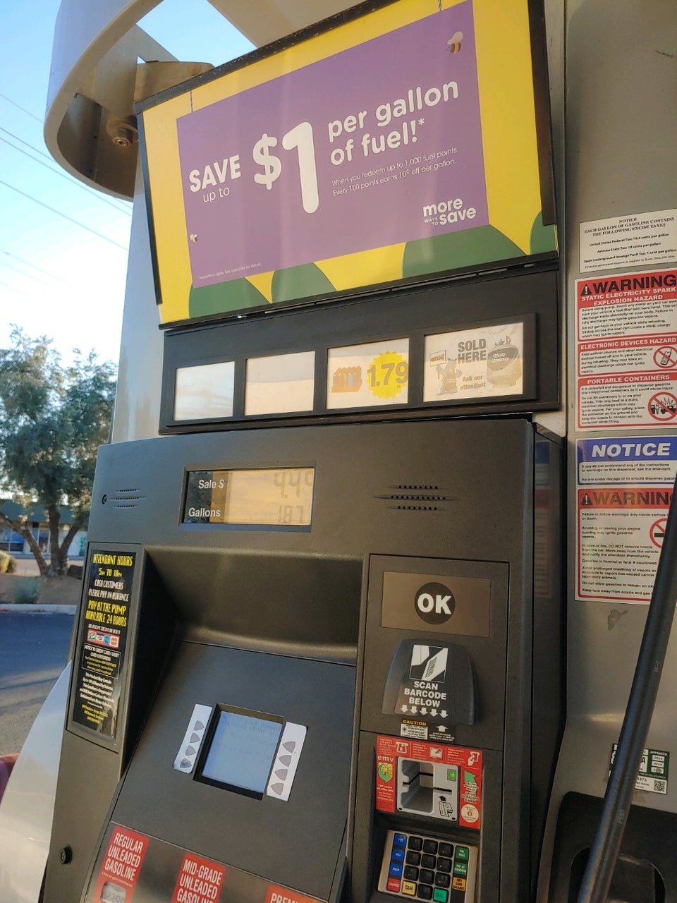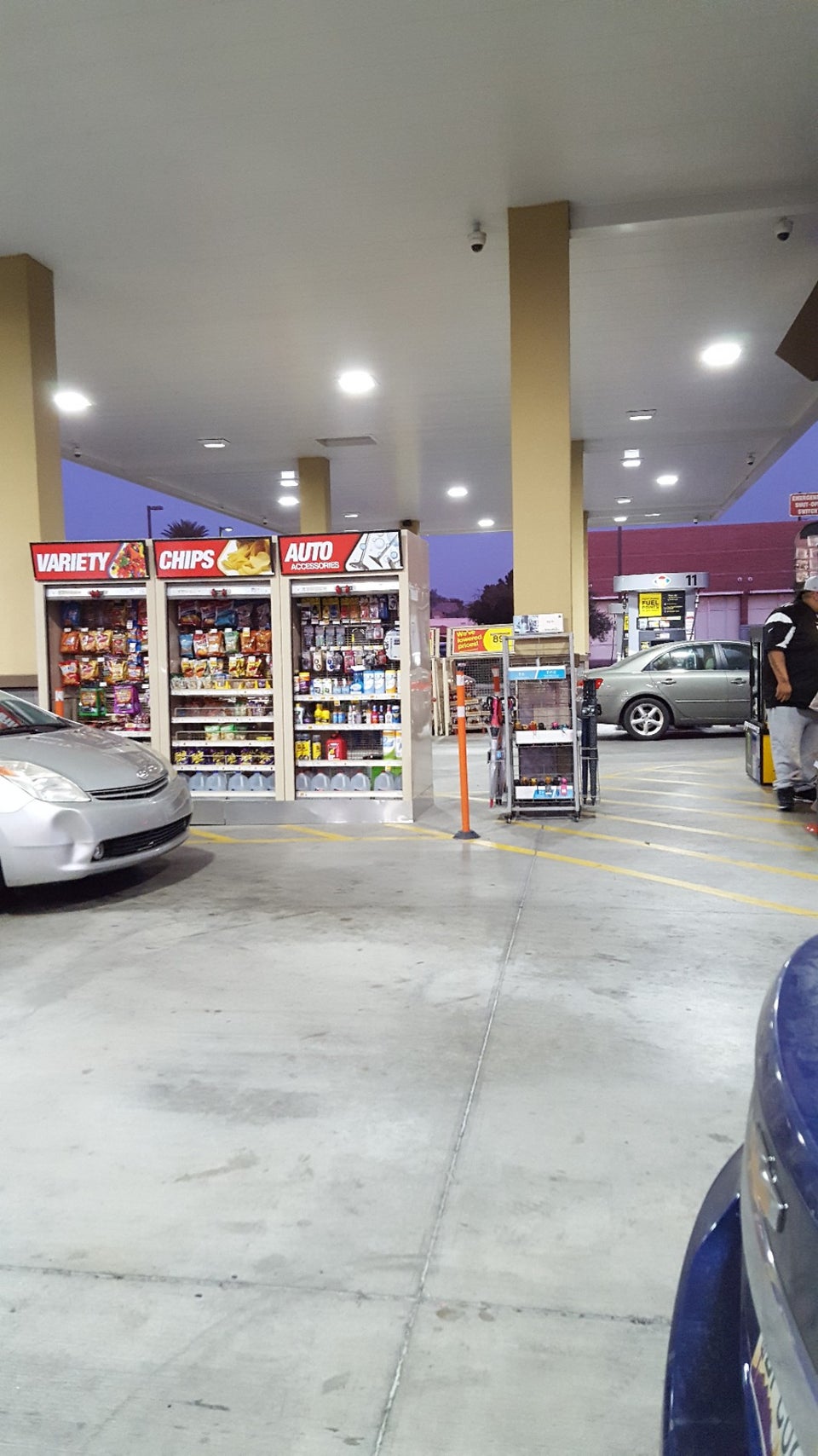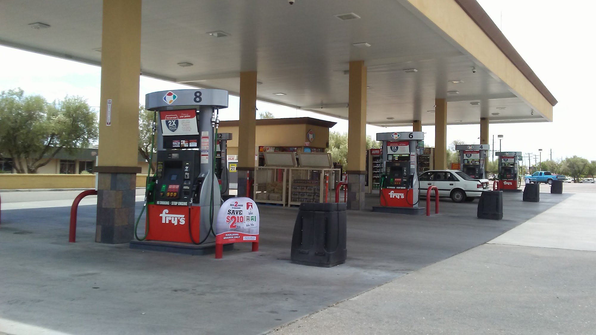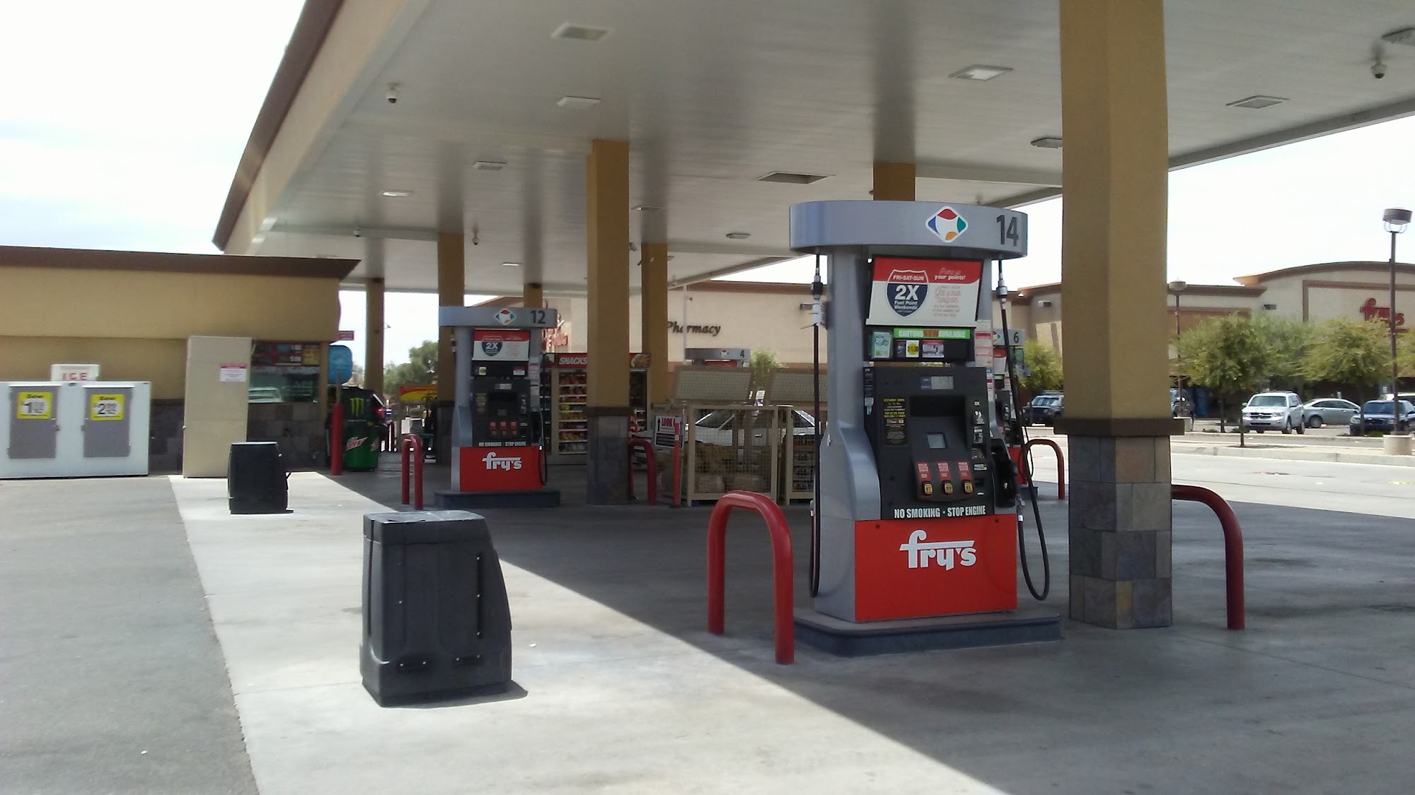 Fry's Fuel Center is a busy location with fast service. The entrance is cluttered and messy with snacks, giving claustrophobic vibes from the start. However, the employees are always nice and catering. The shelves are fully stocked and it is rare to not find a particular item; they have everything. Parking is onsite and appears to be safe, making it a preferable location to run in and grab a few things. There is always a line to fill up due to lower prices. Customers can use their Shopper's Card to earn fuel points and save on gasoline, with savings like 80 cents off per gallon. The ability to use a Sam's credit card is also noted. Some customers express that they usually don't use Fry's gasoline, having heard it is the bottom of the barrel type and watered down, preferring to pay more elsewhere. An additional service includes washing your car for $7, which is considered icing on the cake.