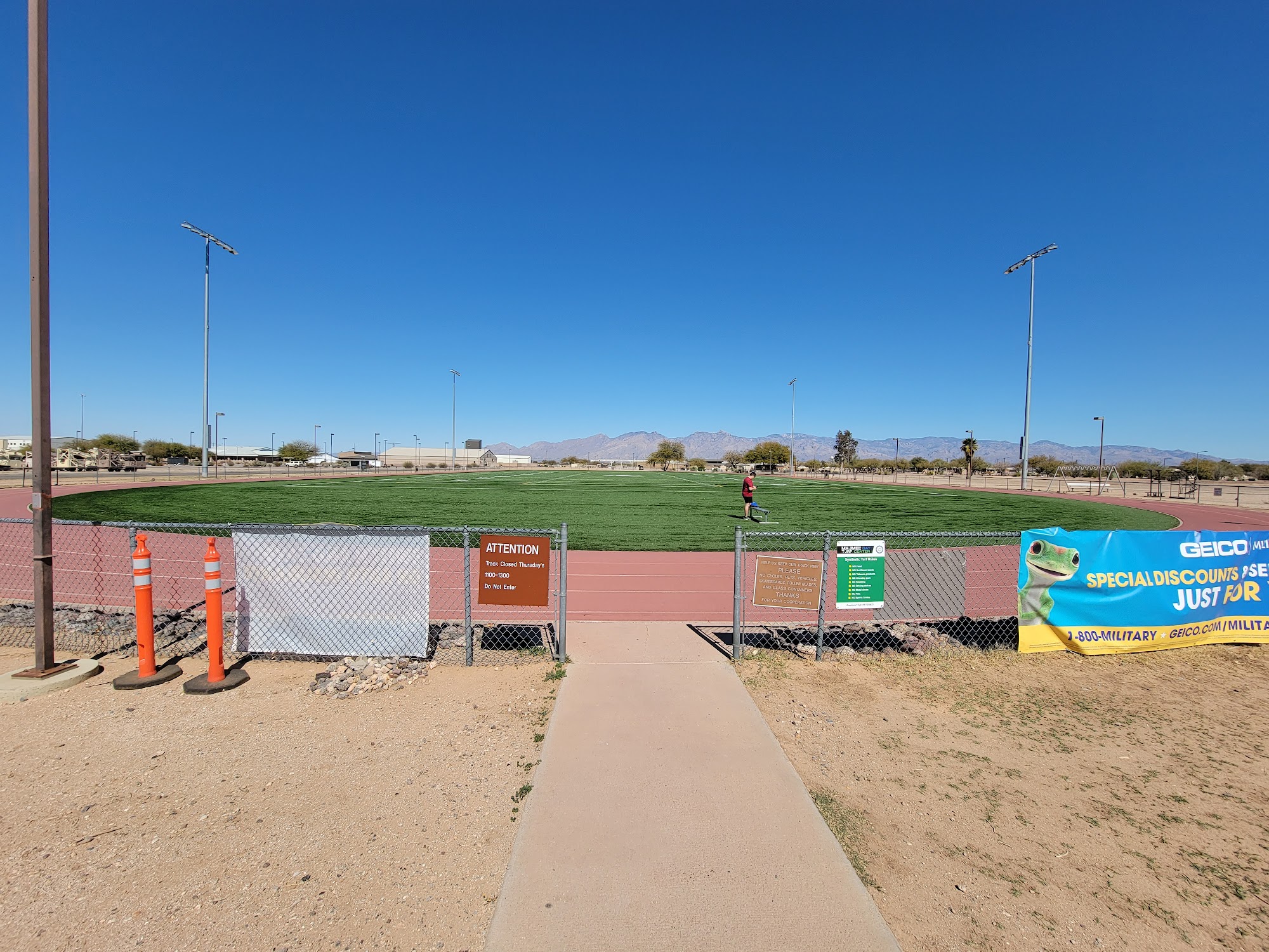 Benko Fitness Center is a nice, clean, and newer fitness facility with an indoor pool. The gym offers great workout equipment, clean restrooms, and excellent service and entertainment. However, the hours listed online are often inaccurative, and during certain evening and holiday hours, only active-duty personnel can access the gym. The building requires significant repairs, from the roof to the shower stalls, but the indoor and outdoor tracks are impressive. The fitness pool is a nice area for swimming laps, with available fitness supplies and a lifeguard on duty. While the pool is not suitable for leisure activities, it provides a refreshing and enjoyable fitness experience. Overall, the Benko Fitness Center caters more to cardio and general fitness activities rather than heavy lifting, which is better suited for the Hefner gym.
