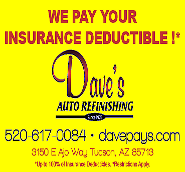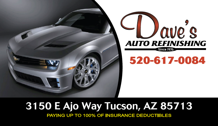 Welcome to Dave's Auto Refinishing - Tucson Collision Repair Center At Dave's Auto Refinishing we have factory-trained and certified service technicians ready to handle any repairs your car, truck, van or SUV. We strive for outstanding customer service, we are able to provide an accurate estimate on any auto repairs you may need. We employ the best technicians and detail specialists, each of them committed to delivering outstanding value and quality in our services. Our technicians at Dave's Auto Refinishing understand that cars will not stay in factory condition, yet we continue to please our customers by delivering their car in a pristine, showroom-quality condition. We Pay Up To 100% Of Your Insurance Deductible! All of our work is guaranteed and we also offer Lifetime Warranties. Our staff will take time to explain things in a clear and professional manner. At Dave's Auto Refinishing we make collision repair simple, easy, and affordable! Not only do we save your deductible, we offer a limited Lifetime Warranty on all our work. Our technicians will take time to explain things in a clear and simple manner. About Us: Dave's Auto Refinishing has provided top quality collision and body repair to the greater Tucson, Arizona and Pima County area for 35 years of quality workmanship along with customer Service is our main and only priority. Dave's Auto Refinishing is your resource for comprehensive, professional automobile collision-body and frame-repair. Our facility is equipped and staffed to handle large and small jobs, all with the same standard of attention to detail. Dave Auto Refinishing was established in the summer of 1976 by David Heredia. The business is family owned, operated, and you deal directly with a family member or with the Manager - Eric Heredia. David started with custom painting which led to body and frame repairs. David worked in several shops where he received training in refinishing techniques, color matching and unibody / frame repair. Due to their love of the industry and passion for the customer they made a decision to open and operate a facility where the main focus was the customer, quality repair and where they would be in charge. They invested their life savings into the business and are involved in your repairs from beginning to end. Our highly trained, certified auto body service technicians use state-of-the-art equipment factory authorized parts and auto body finishes and we guarantee your complete satisfaction.