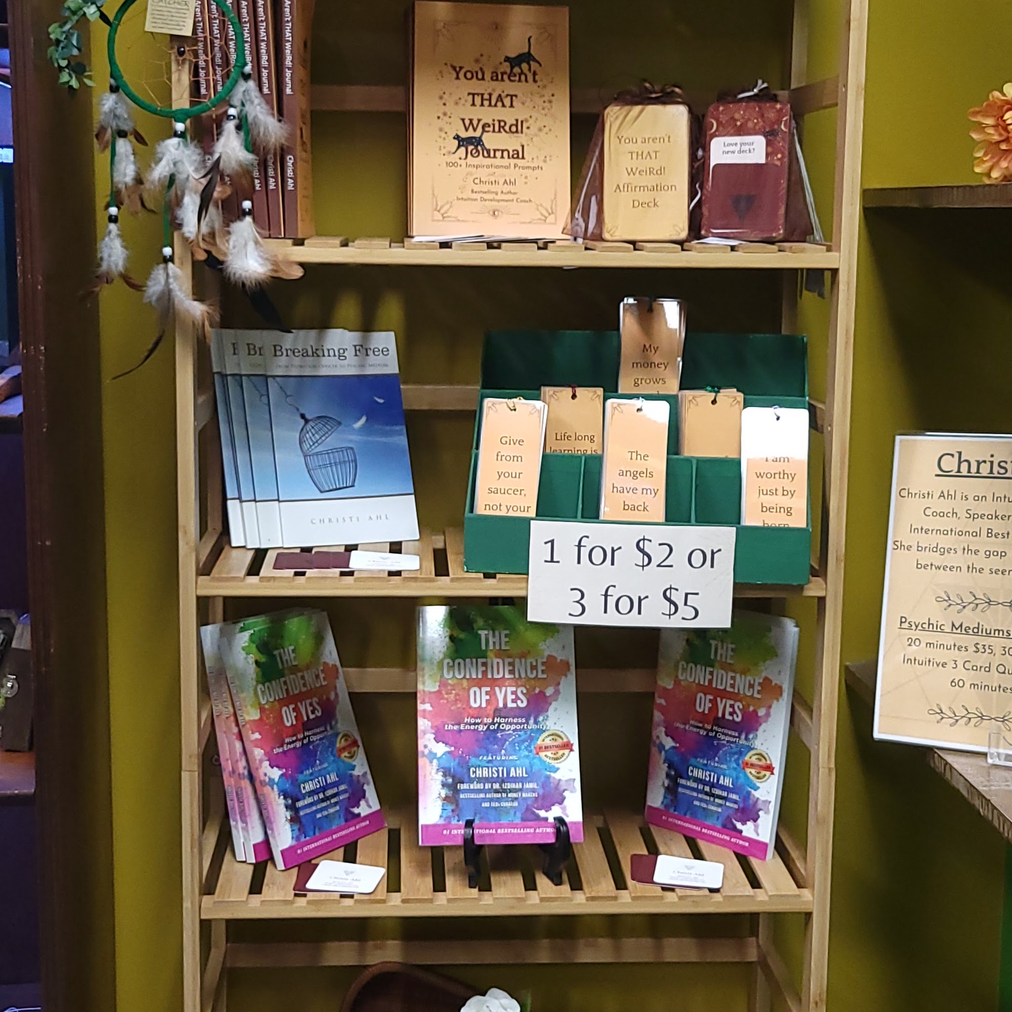This place is my vibe. All the ladies are awesome. I loved Kahealani's readings & class. I haven't had readings from anyone else. She's just that good. The moon markets are cool too. Just a fun place to hang out and buy fun stuff. I highly recommend if you're in to tarot and such.