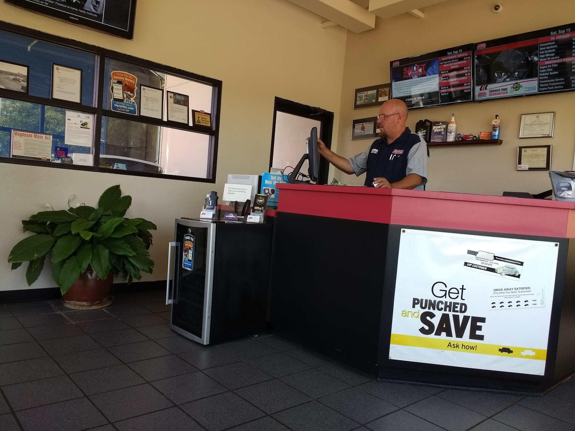 Professional, knowledgeable, helpful, quick, reasonably priced and friendly even in the summer heat on a Sunday. I am a long term customer and have never been disappointed with the service I have received. Many thanks Speedway Grease Monkey!
