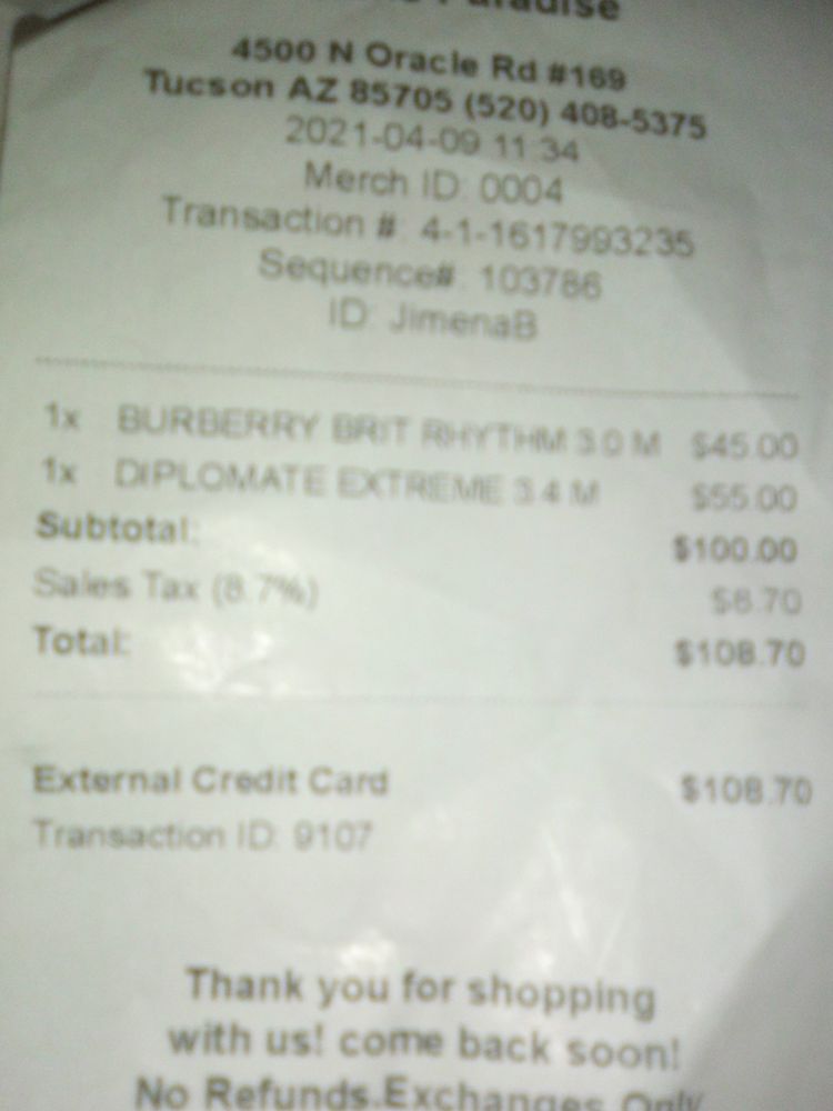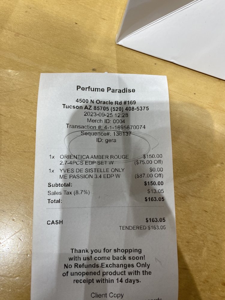 The customer service was great but the perfumes they sold my son were way too overpriced!! Amazon and fragrancenet have them for less than $30 each, so he didn’t got a “deal” like they make it sound, the perfumes smell great but if you were a little bit more honest maybe you could have more sales and returning...