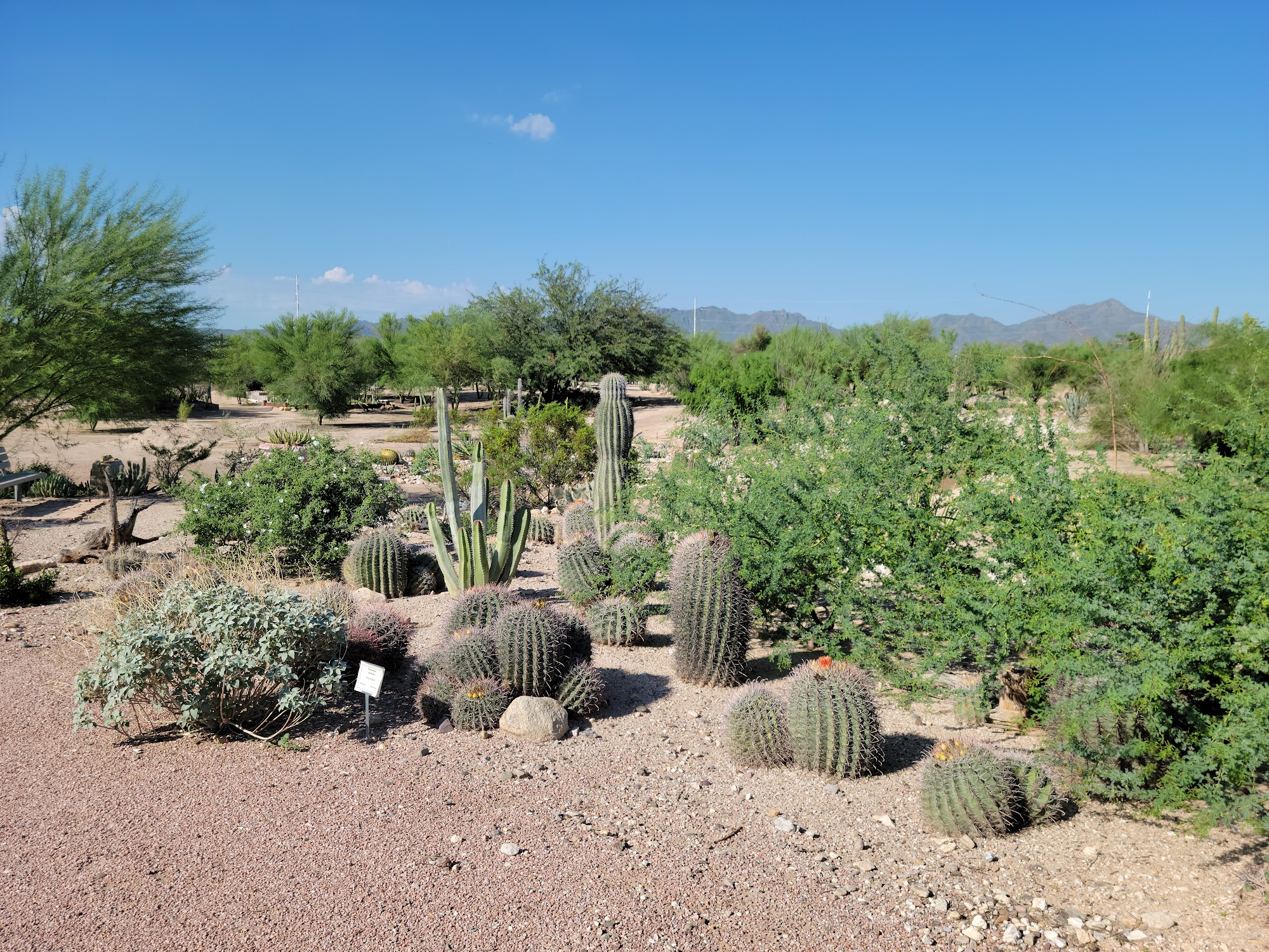 Pima Prickly Park is a lovely little park in Tucson, known for its beautiful cactus blooms and tranquil atmosphere. Visitors can enjoy flat dirt trails, perfect for walking, and explore a variety of cacti and succulents. The park features a large Ramada with picnic tables and benches, making it an ideal spot for relaxation. Leashed dogs are welcome, and the paths are wide and well-maintained, enhancing the experience for pet owners. Although there are no specific restrooms within the park, facilities are available in an adjacent county parks building. The park is maintained by dedicated volunteers from the Tucson Cactus and Succulent Society, making it a charming addition to the area. Overall, Pima Prickly Park offers a peaceful escape and a chance to learn about desert flora.