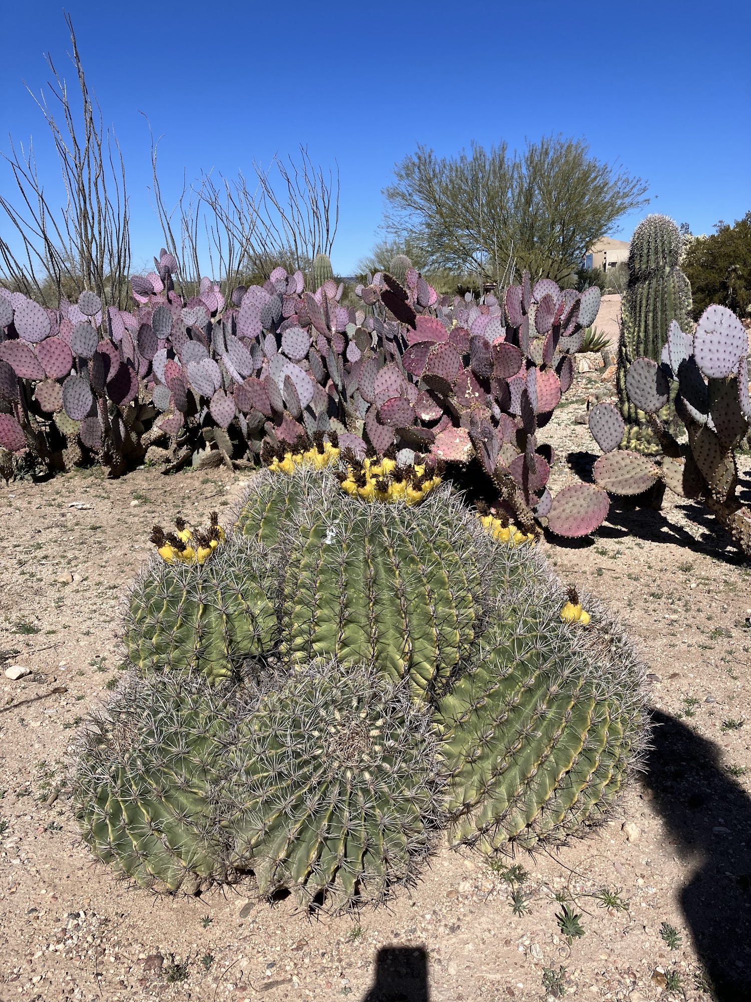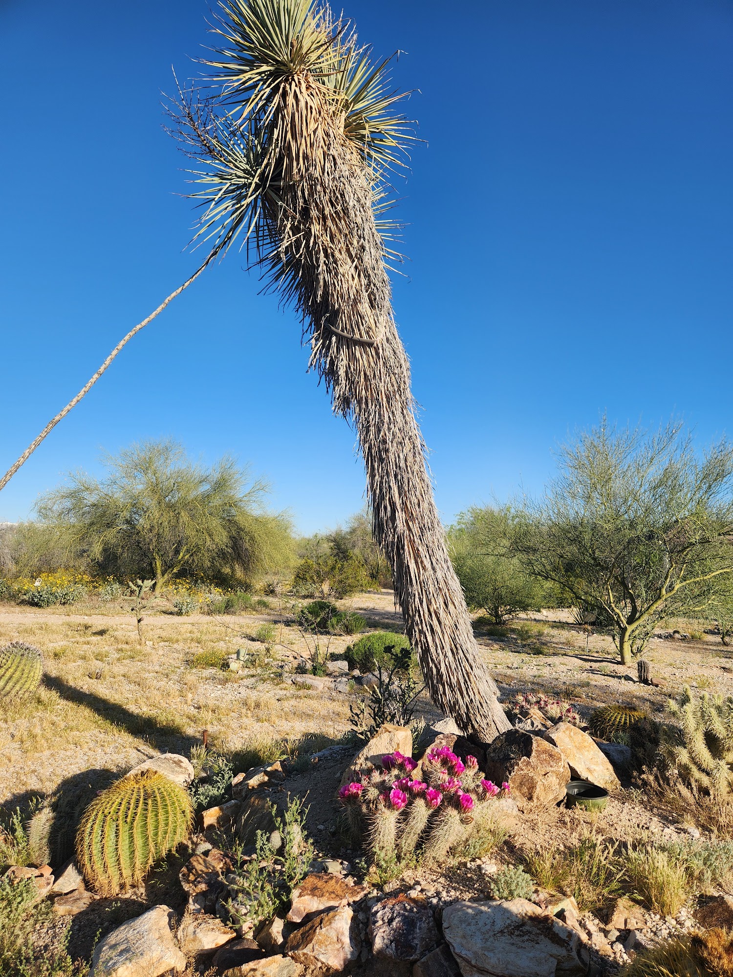 Lots of beautiful cactus blooms right now and more coming! Great flat dirt trails to walk on. Saguarohenge is pretty cool too. No restrooms (that I'm aware of). Free to walk around and leashed dogs are allowed.