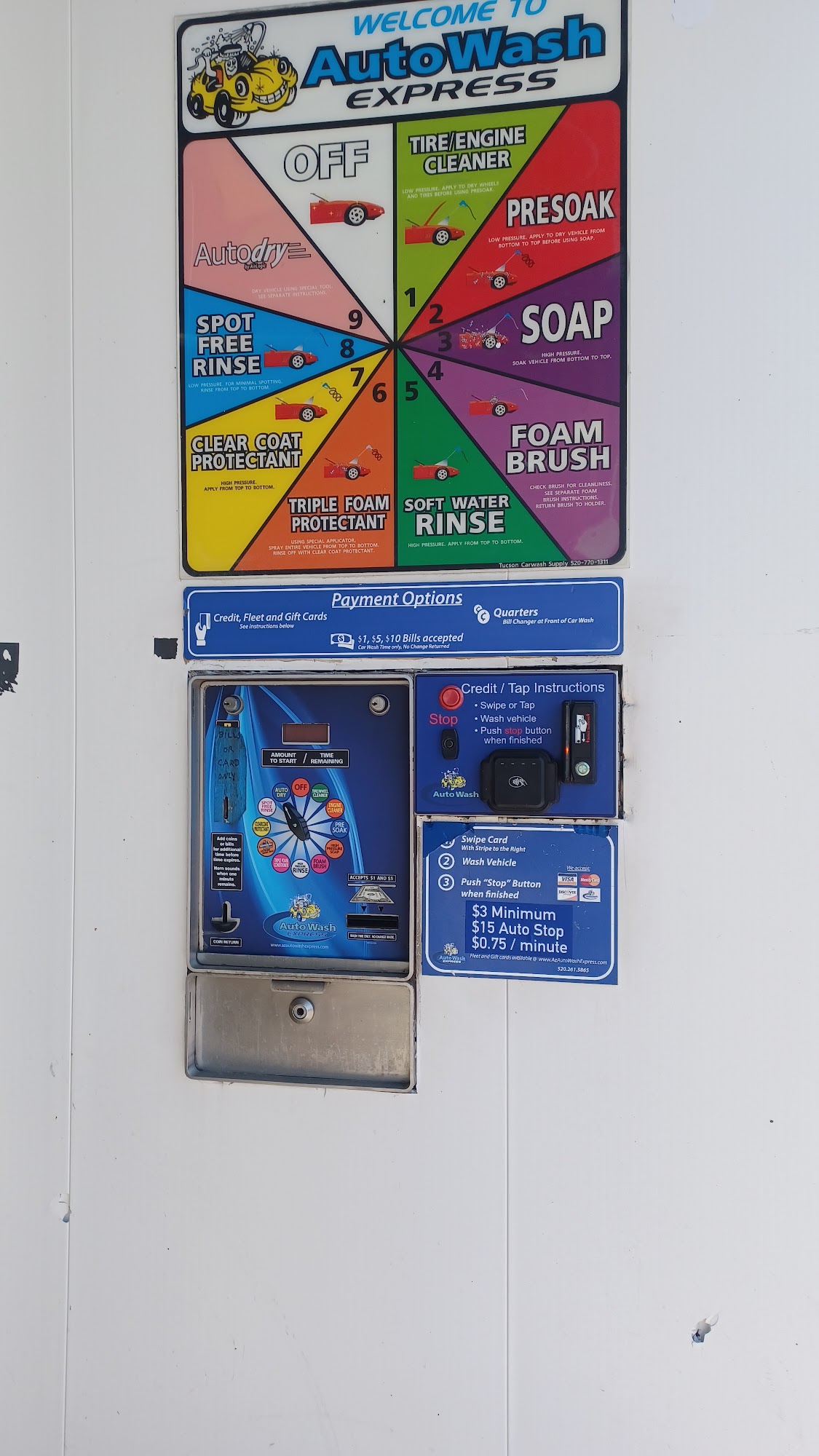 Auto Wash Express is an old school, self-service car wash where vehicles are washed by hand using wands. Customers find it cheaper than larger chains and appreciate that the owner is a good person. The facility is consistently described as clean and well-maintained, with everything in working order. The pressure wash is very good and effective at reaching places drive-thru washes miss. The self-service bays are highly recommended and considered awesome, with some calling it one of the best car washes they’ve been to. The location is viewed as safe, free of shady dealings, and in a part of town where people do not feel unsafe or worry about being mugged in broad daylight. A common note is that the timer starts as soon as you use your card, so it is advised to have a plan. The cost is 75 cents per minute, with a maximum time limit. While it gets things pretty clean, some note it may not remove all bug spots or dirt along the bottom edges, requiring a follow-up hand clean at home.