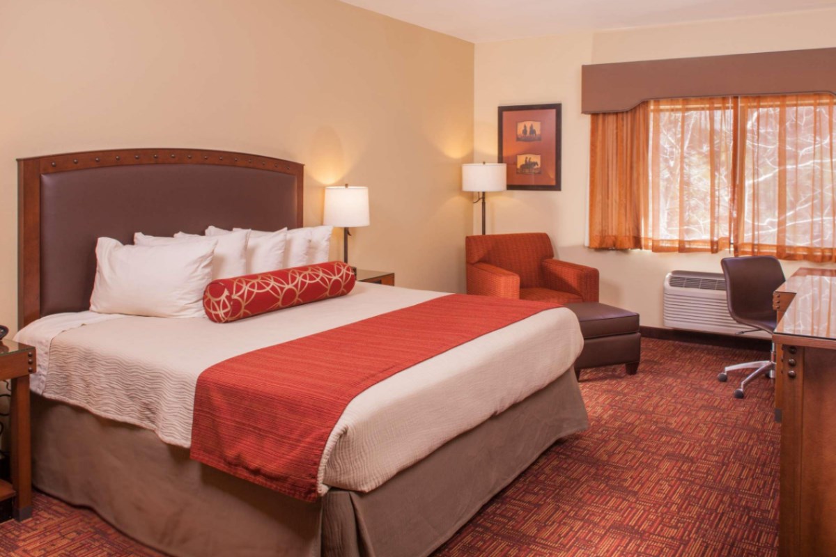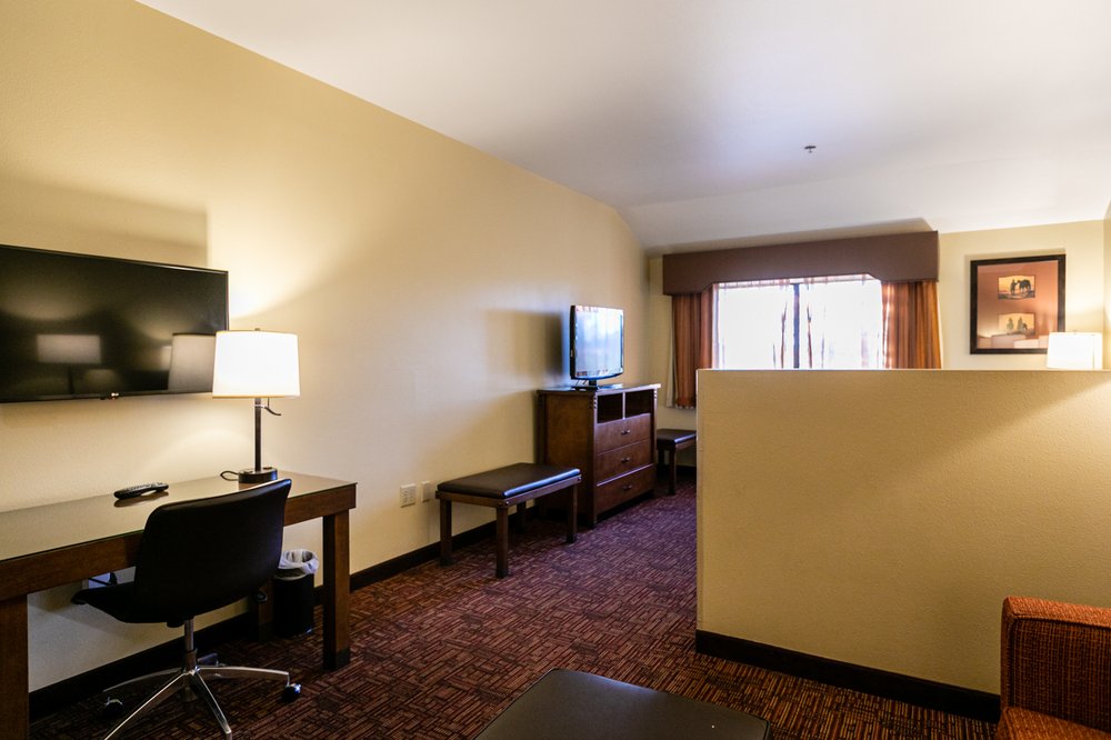 The Best Western Plus Inn Of Williams is a charming hotel that offers a resort-like experience to its guests. The inviting lobby features a fireplace and comfortable seating, along with a coffee machine and a water refill station. The friendly and engaging staff ensures a warm welcome. The hotel boasts a steakhouse and lounge, where guests can enjoy delectable meals. The steak dishes, cooked to perfection, and the delicious sides and bread, are highly praised by visitors. The hotel's thoughtful gesture of splitting a meal for guests at no extra cost is a nice touch. Guests can relax in the hotel's pool and hot tub, or gather around the fire pit in the outdoor seating area. The grassy area with cornhole games provides additional entertainment. The well-equipped fitness room is available for those who wish to maintain their workout routine. The hotel's daily breakfast spread is extensive, offering a wide range of options, from eggs and sausage to pancakes and pastries, ensuring that guests start their day with a hearty meal. The rooms are spotless and well-appointed, featuring comfortable furnishings, a Keurig coffee maker, and a refrigerator. The hotel's Wi-Fi is reliable and fast, catering to guests' needs. Conveniently located near Interstate 40 and just a short drive from the charming town of Williams, the Best Western Plus Inn Of Williams is an excellent choice for travelers seeking a comfortable and enjoyable stay.