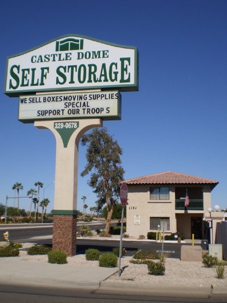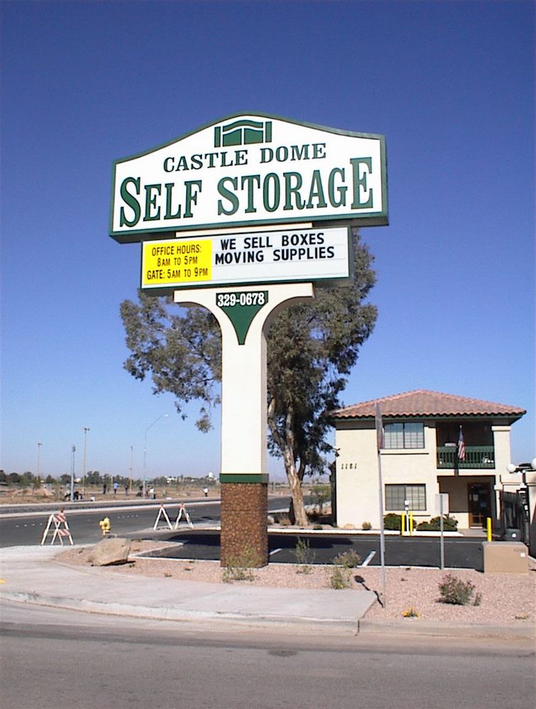 Our Yuma storage facility is completely fenced and gated for your strong sense of security. Other security features include on-site managers, digital keypad access, infrared alarm system and video surveillance cameras. Castledome Self Storage has a variety of space for all storage needs. Storage unit sizes range from 5x5 to 20x35 and are all drive up accessible.