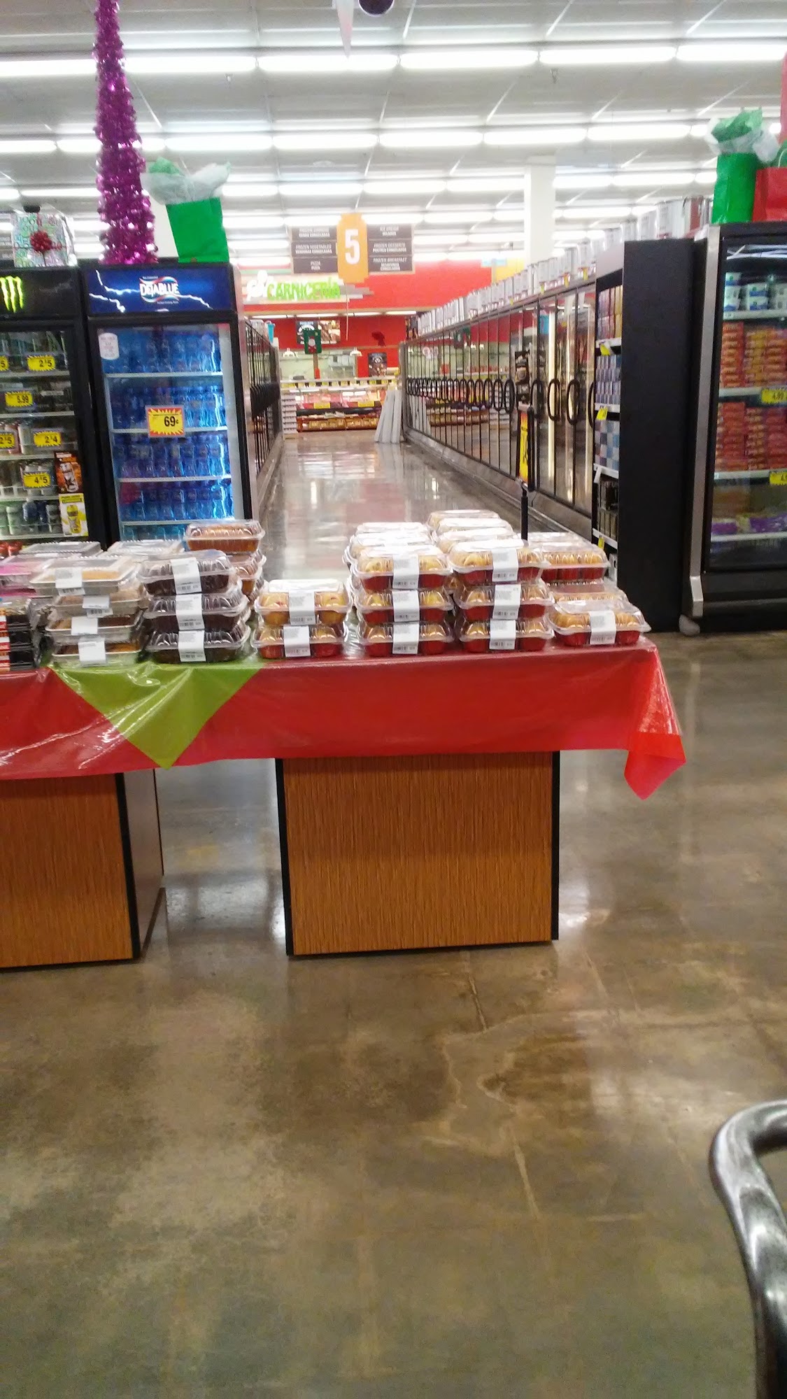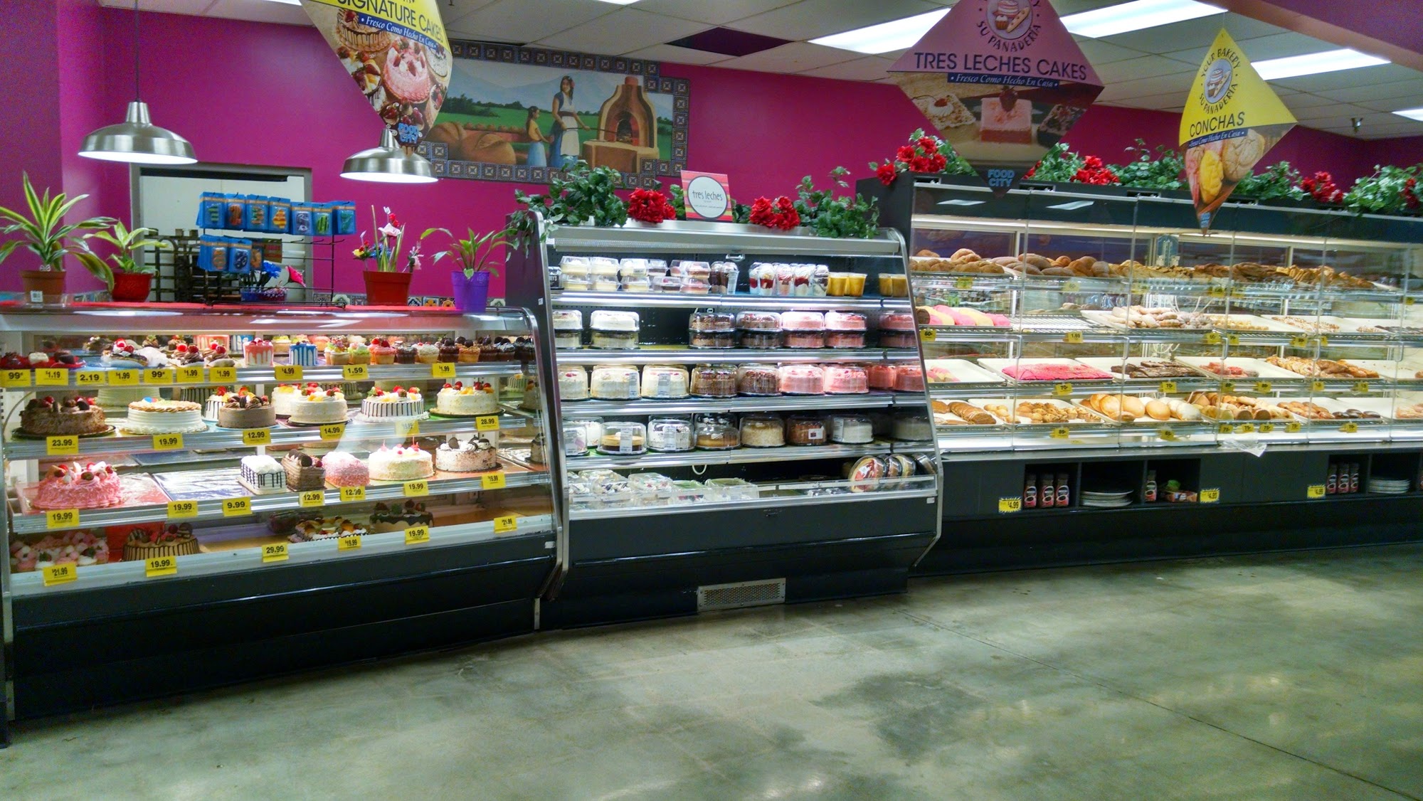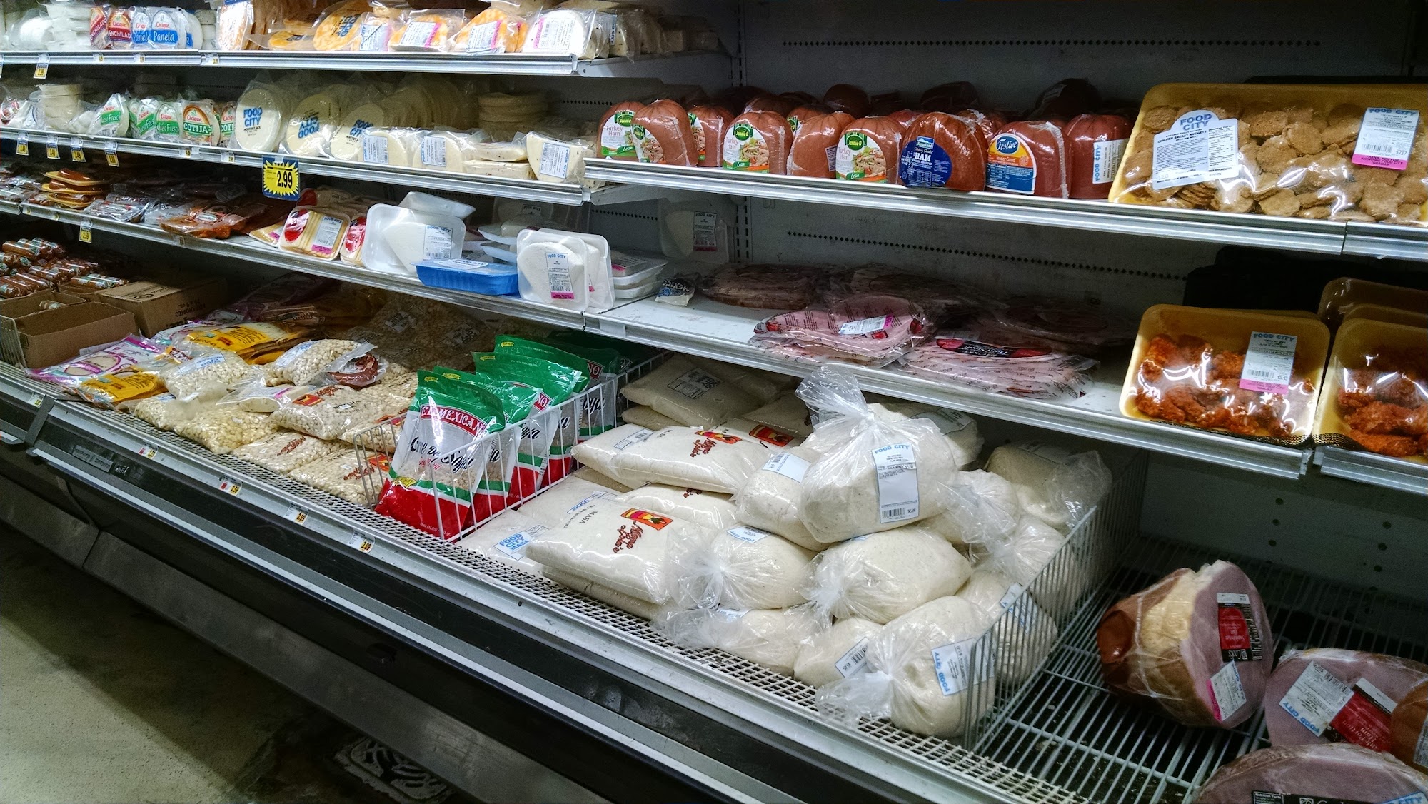 Food City is a grocery store with a variety of foods, including Mexican items, spices, fruits, vegetables, bread, meat, dairy, chips, candy, cookies, drinks, and frozen items. It is a market that provides fresh produce and baked goods, baking fresh bolillos every morning and having fresh tortillas. The store is very clean and has a hot deli, a cafeteria, a bakery, and a seating area. It offers prepared food and has special days for vegetables and fruits. Some find it a bit unorganized and cluttered, requiring customers to go up and down the aisles. It has good prices and is recommended.