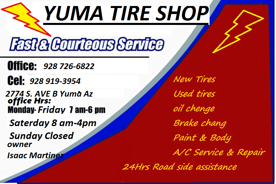 Yuma Tire is a highly praised tire shop that provides excellent customer service and affordable prices. The two young employees are described as helpful, nice, and patient, creating a very good overall experience for customers. The service is prompt, with customers being attended to quickly upon arrival, even in emergency situations. Customers have been impressed by the shop's ability to find the right tires in stock and complete the work in a timely manner, often faster than larger competitors. The friendly and hardworking staff, along with the reasonable pricing, make Yuma Tire a recommended choice for tire replacement and repair in the area.