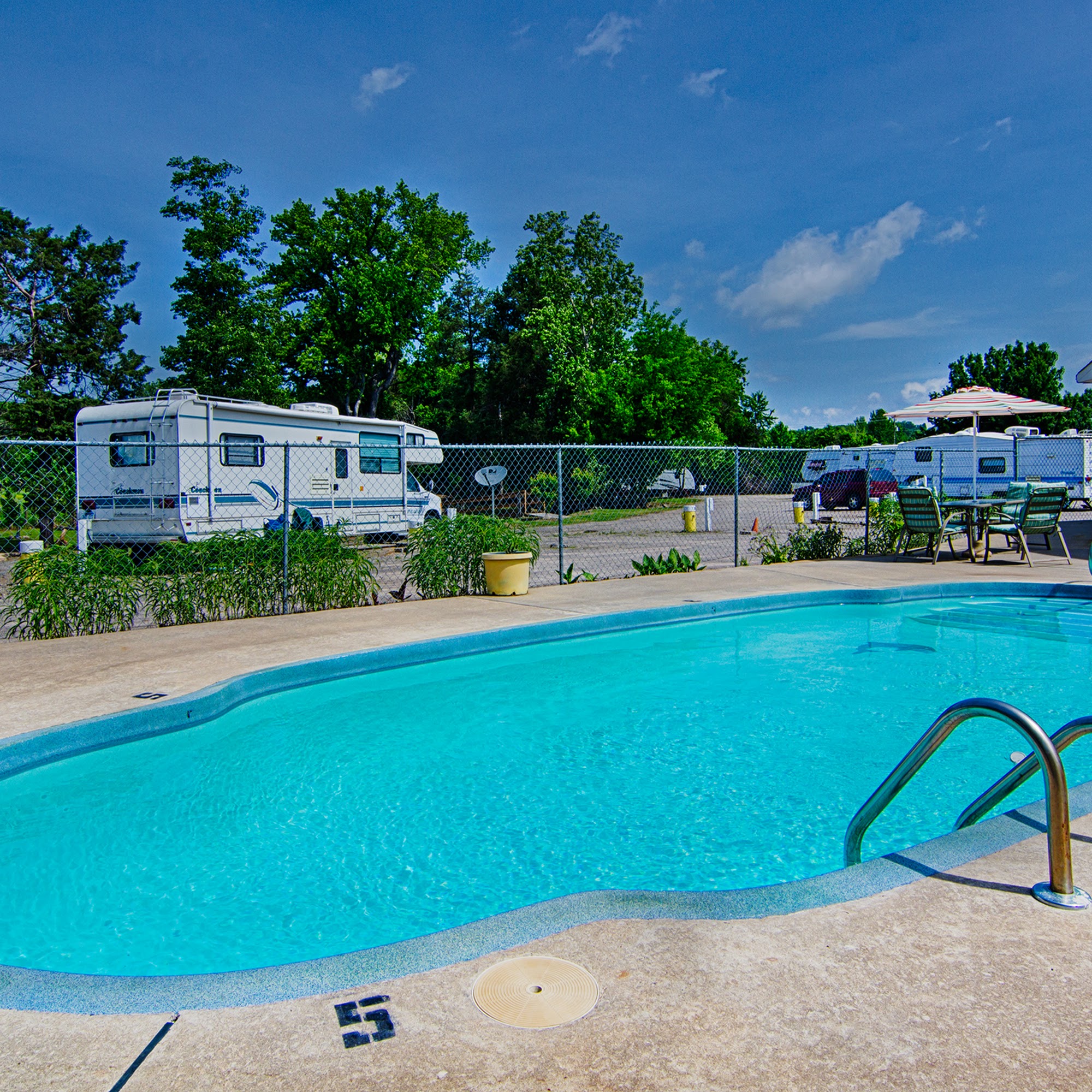Crabtree RV Park is a basic RV park built for campers passing through for a night. It has an assortment of sites and is a great place for overnight stays. The park is located beside an RV dealership and a few restaurants, including a Cracker Barrel right next door. Amenities include a seasonal swimming pool, clean bathrooms and showers, laundry, a dump station, propane, and coffee in the lobby. The service department receives high praise, with many noting the staff as awesome, super helpful, and great folks to deal with. They are accommodating for repairs, parts, and sales. The campground is not glamorous but serves its purpose well for travelers, with a friendly and busy camp host taking care of the park and its guests.