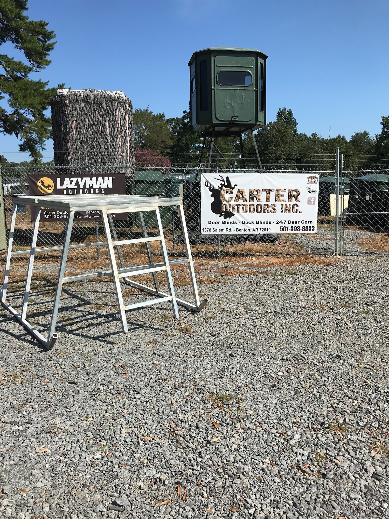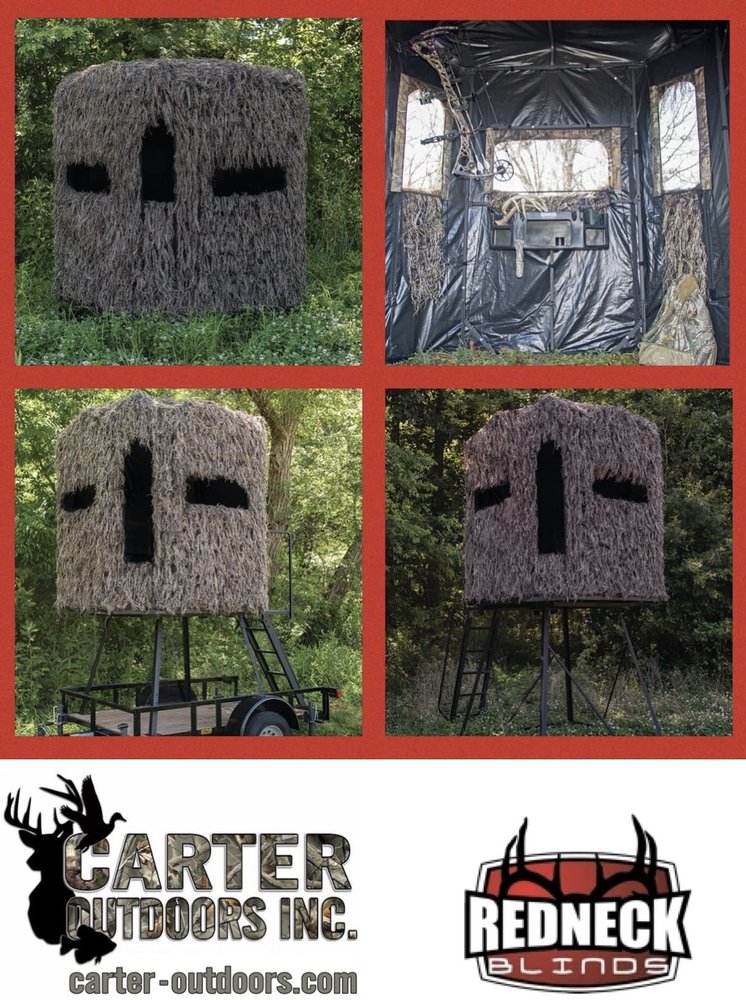 Carter Outdoors Inc. is the exclusive dealer for Redneck Blinds and Lazyman Blinds in Central Arkansas. It offers an unbeatable selection including hunting blinds, stands, feeders, crossbows, game cameras, boating equipment, and apparel. Reviews highlight the best prices, huge selection, and friendly customer service. Customers report easy, good experiences and getting exactly what they wanted. The business is highly recommended, noted for taking personal care of clients and providing awesome service. It is considered the best in the business.