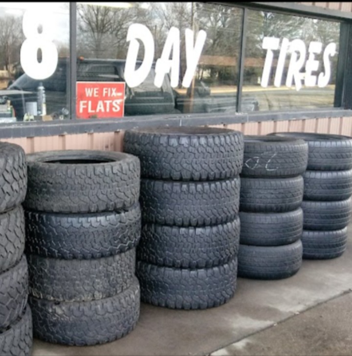 8 Day Tires is a local tire shop known for its fast and efficient service, often completing repairs or installations in under 20 minutes. They provide excellent customer service and are described as helpful, nice, down-to-earth guys who relate to their customers. The business offers good and reasonable prices, specializing in used tires and quick tire repairs. They are noted for working with customers and going out of their way to help, even beyond normal hours. Service is first come, first serve, and they are trusted as a reliable go-to place. They only accept cash or CashApp.