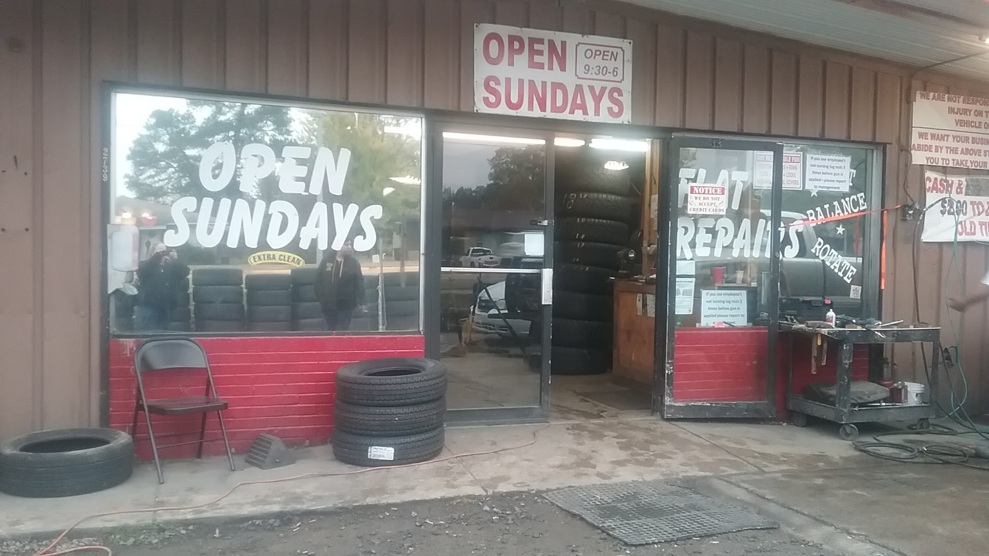 They had the tires i needed. And they worked with me. With what little I had, they worked with me. We're helpful and the dudes helping me with my truck related to what kinda week I was having. No big chain tire place like pep boys, or firestone would have EVER done that. Why I dont like big chain places.