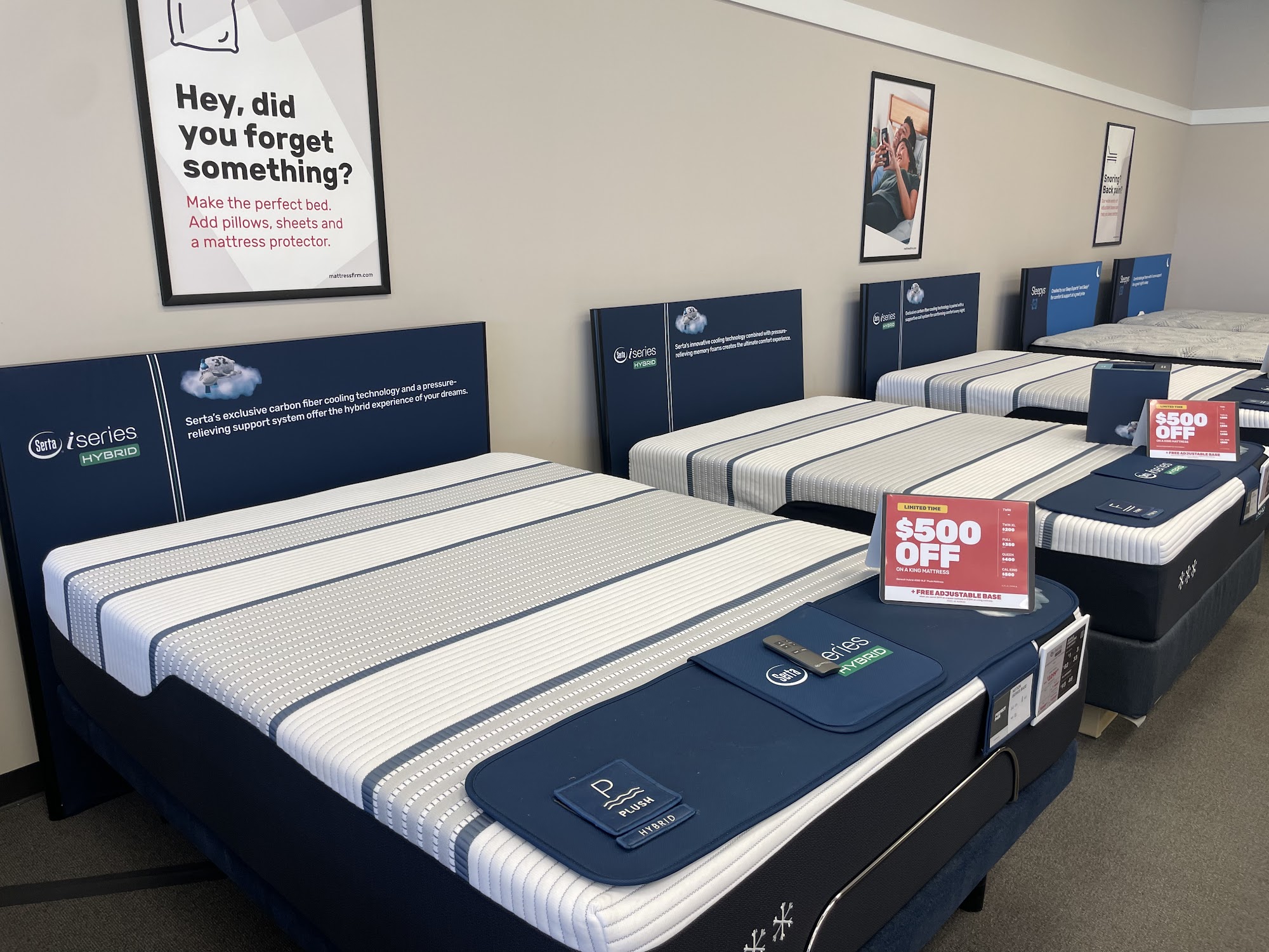 Had a great experience. After going to another bed store and not getting a single word from the many sales people at the desk, we went to Mattress Firm. They were very professional and helped us find the right bed for us. Excellent service.