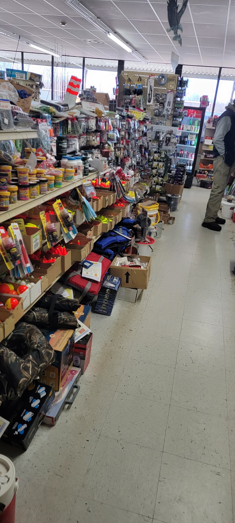 Small home town store with lots of fishing lures,fishing poles and hunting stuff,ammo, clothes ,boots, and home goods...Jerry and Linda and Jeannie are some of the best people in Danville,ar