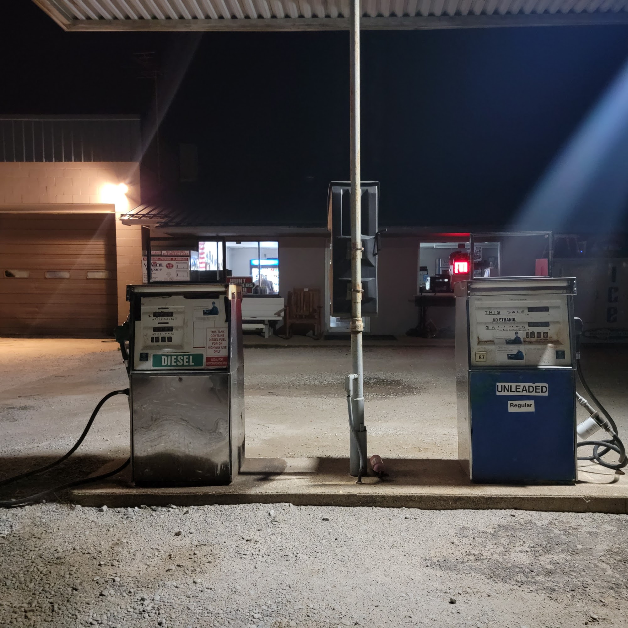 Friendly folks fueled up an got soda pops an was on the road again Harleys Beware 89 octaine