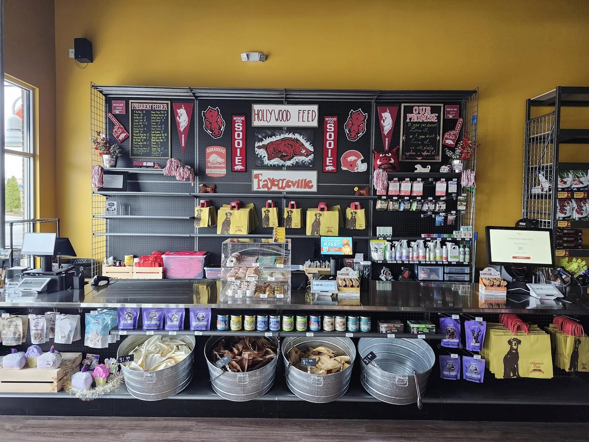 Hollywood Feed is a wonderful pet store in Fayetteville, AR. It carries high-quality dog and cat food, treats, toys, and beds, often at cheaper and super reasonable prices. The staff is extremely friendly, knowledgeable, super helpful, and fantastic, providing top-tier customer service and advice. They are very community oriented and can help with everything from food to toys, even for picky eaters or first-time pet owners. The store has a unique return policy, the Hollywood Feed Promise, and a Frequent Feeder Program for savings. With a price match guarantee and gracious service, it is a great place and a different breed of pet supply store, making it a new favorite for many.