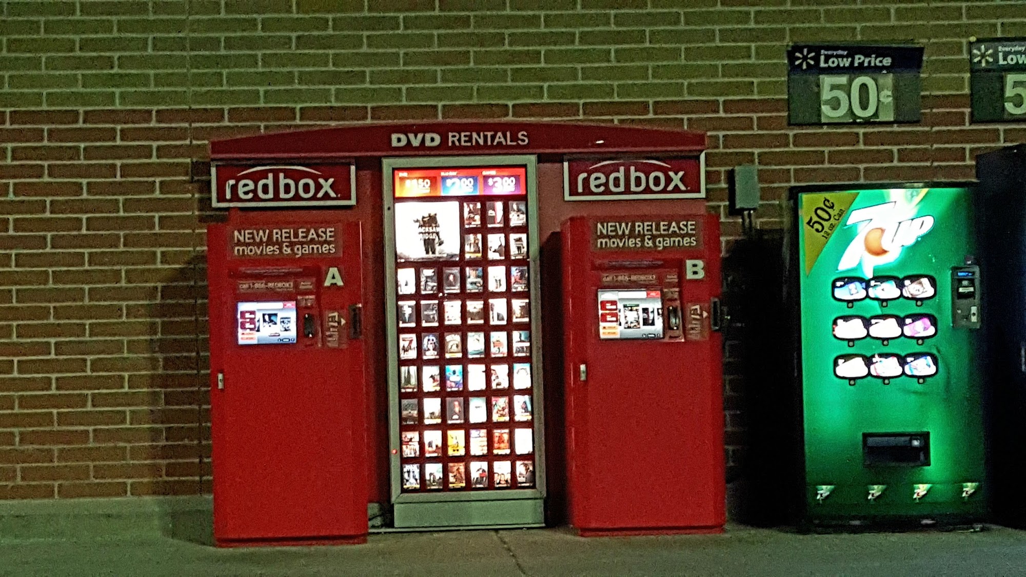 Conveniently located outside of Walmart. Great selection of movies