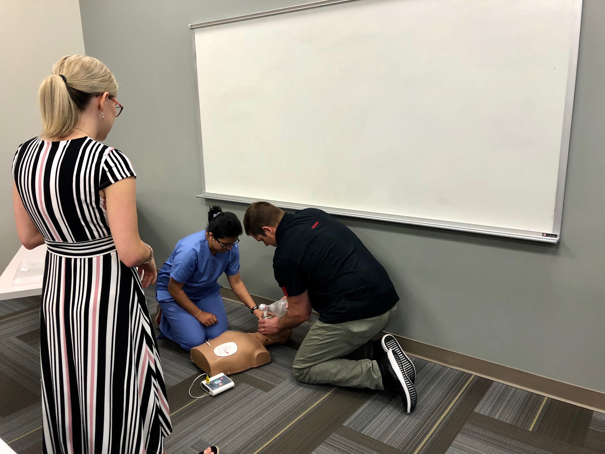 Well taught. Each person had a practice adult and infant dummy. Videos were real people, staged scenes, and scenarios. Explained, taught, and practice in a short amount of time.