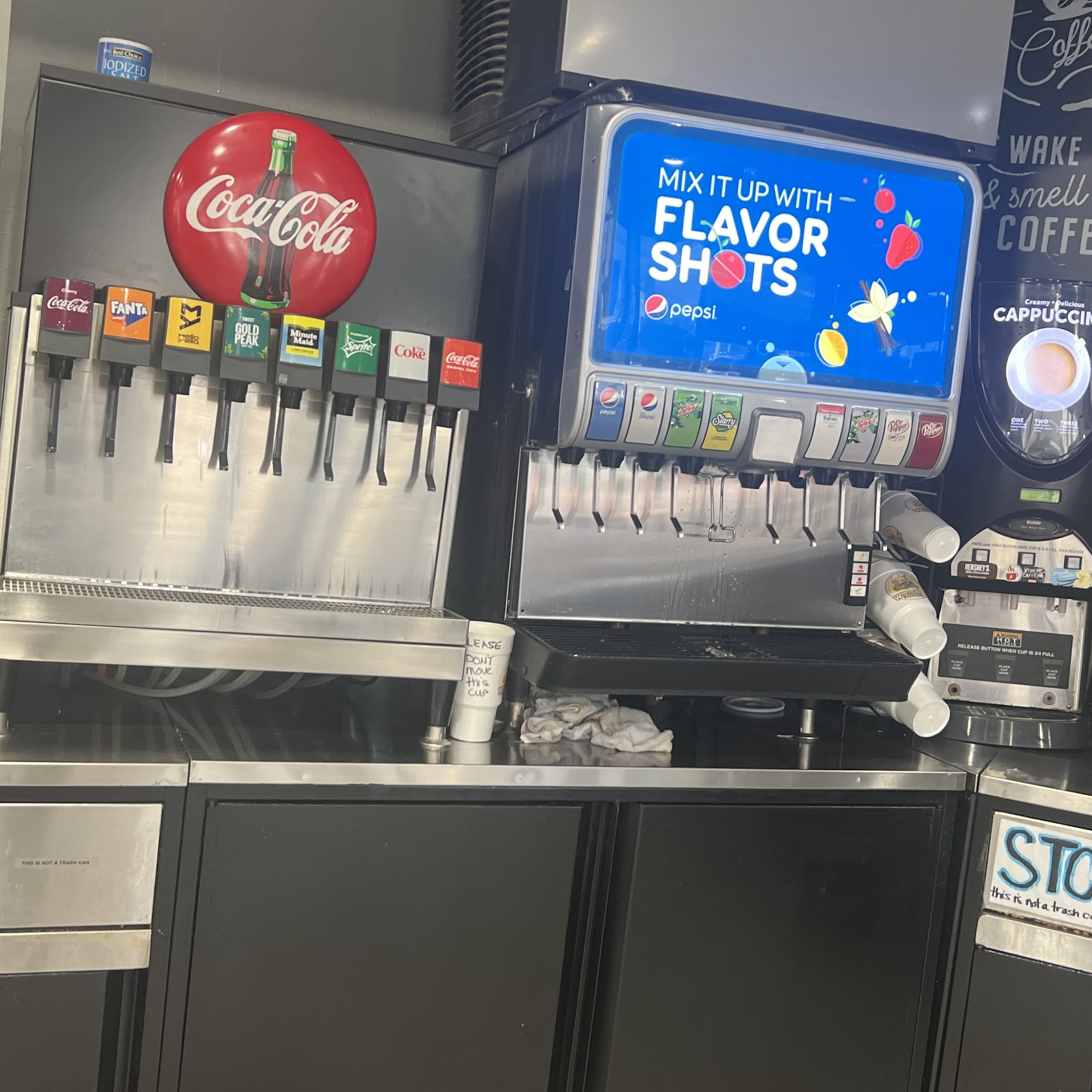 I went in and got something for my husband to eat just some for chicken and it came out to be $18 so I asked about the sign saying different and they did let me get it for the price they were showing so for 6 chicken strips it was 18 I have decided never to go in there for food but the gas prices were good