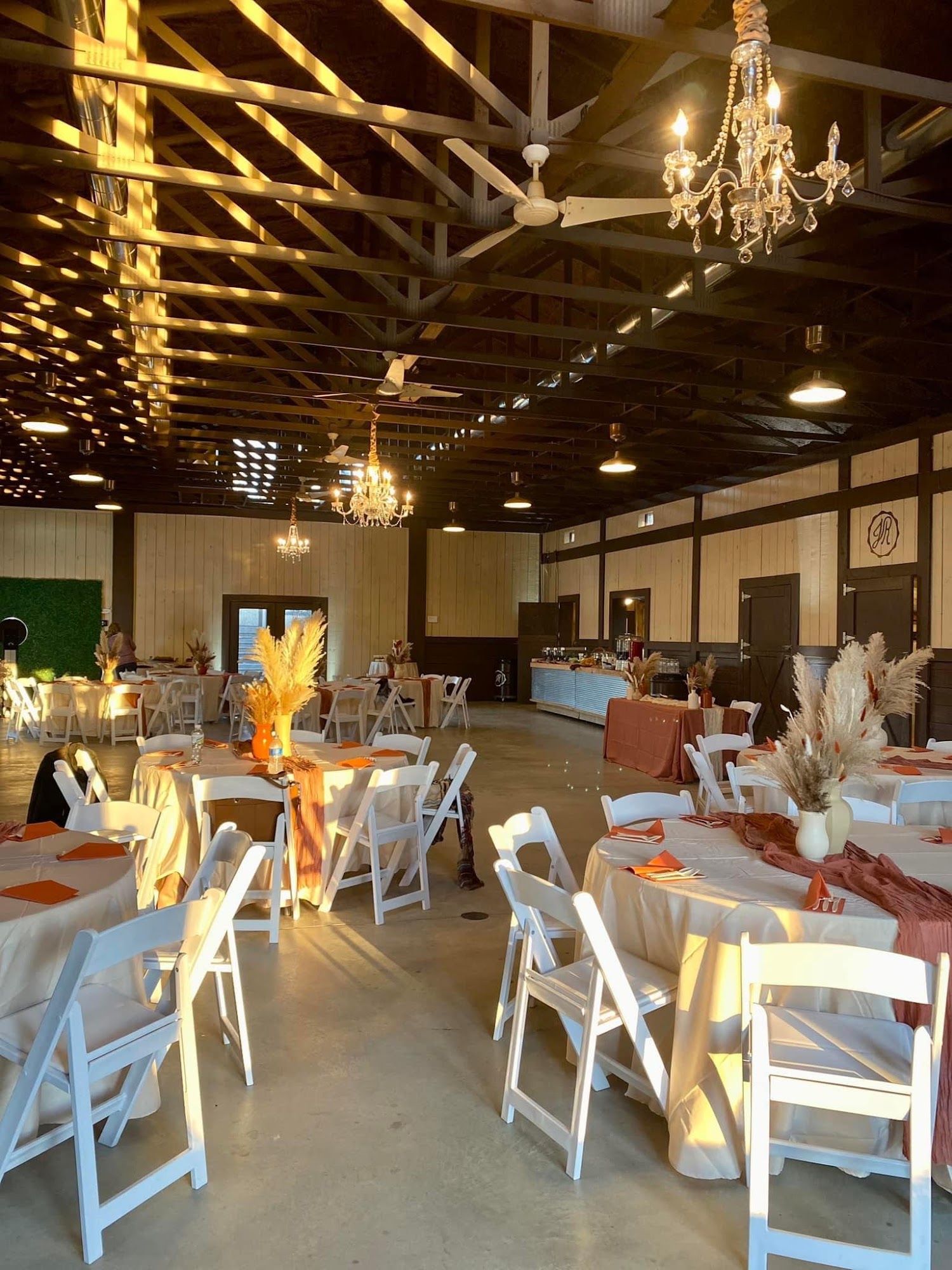 Jamestown Ranch is a beautiful and peaceful venue, ideal for weddings and events. The newly renovated barn provides an elegant indoor reception space, while the outdoor ceremony settings are serene. The property features open fields, a pond, and golden sunsets, offering a photographer's dream with many awesome spots and variety. It is also a unique and excellent meeting space for small team retreats or training. The owners and team are fabulous, wonderful, helpful, and hands-on. They are accommodating, responsive to questions, and ensure events run smoothly. They set up and take down tables and chairs and are available to assist. The onsite decor is an awesome addition for weddings, and clients may use any decor on site. The venue is affordable and comes with all needed amenities. These include an excellent sound system that works perfectly, a giant TV for slideshows, buffet tables on wheels, and excellent bridal quarters with a shower. The vibe is friendly and professional, making everyone feel welcome. Jamestown Ranch is highly recommended for a perfect and beautiful setting.