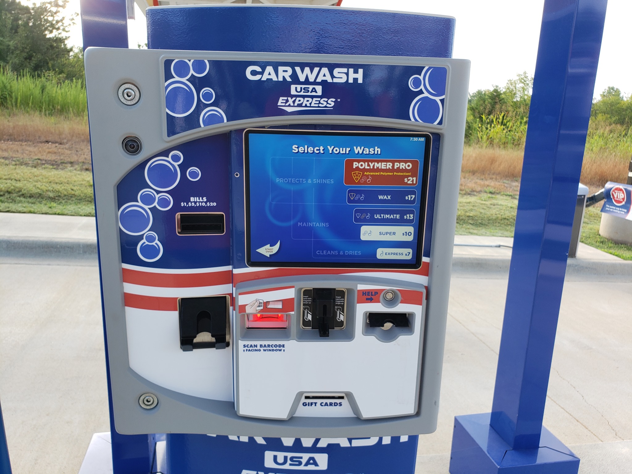 Great car wash with lots of cleaning options. This car wash is well kept plus it doesn't have run-down equipment.You get a lot of value for your money and can pay with cash or a credit card.