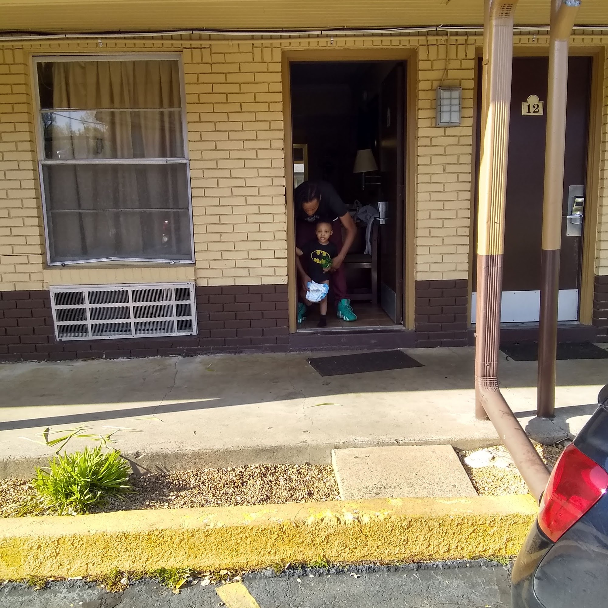It is definitely a Budget Inn the rooms are outdated but they're all right they're not dirty or anything the neighborhood is a little bit more iffy overall experience was good the staff is really good here very