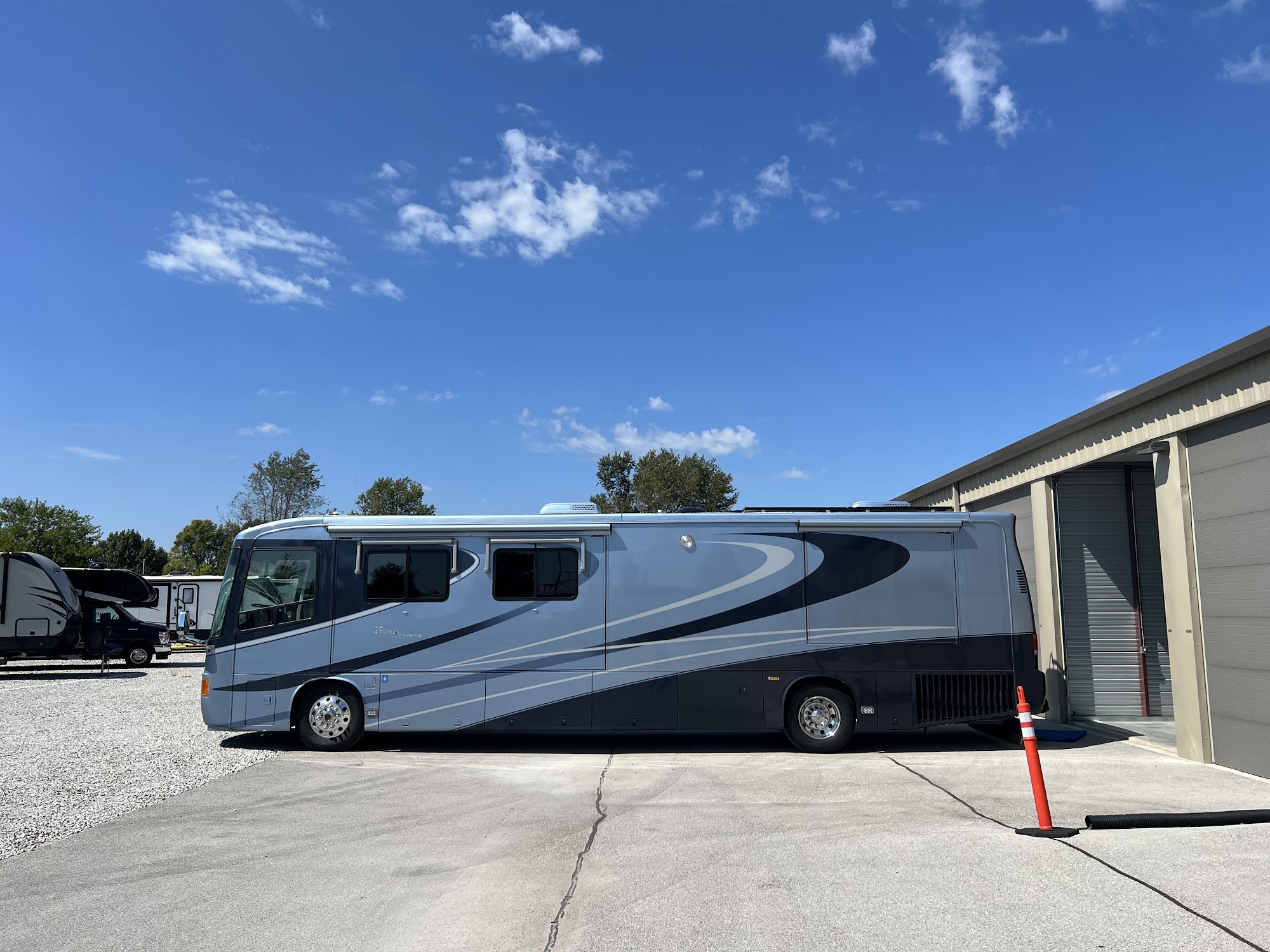 "We specialize in over-sized high-cube Household, RV & Boat self-storage. In addition, our 15 acre facility has over 100 outdoor RV parking spaces including pull-through spaces. Our Premier Club includes RV tank dump, wash & air stations. Wide drive areas for EASY maneuvering. We offer Quick and EASY Storage solutions!"