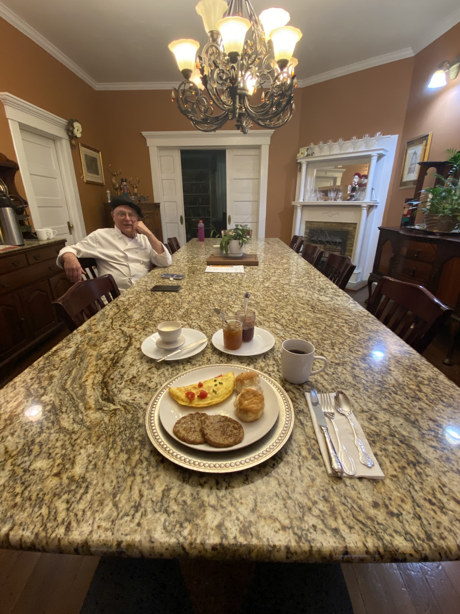 Incredible location right across from the city park. Delicious breakfast cooked by Iohn.