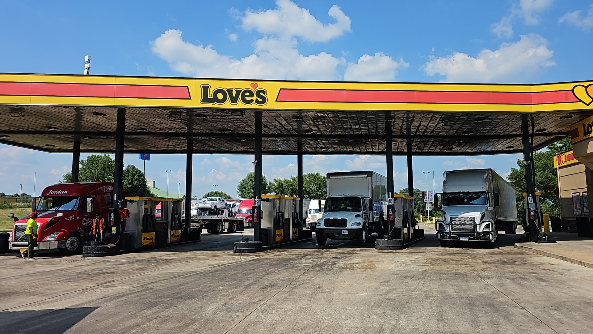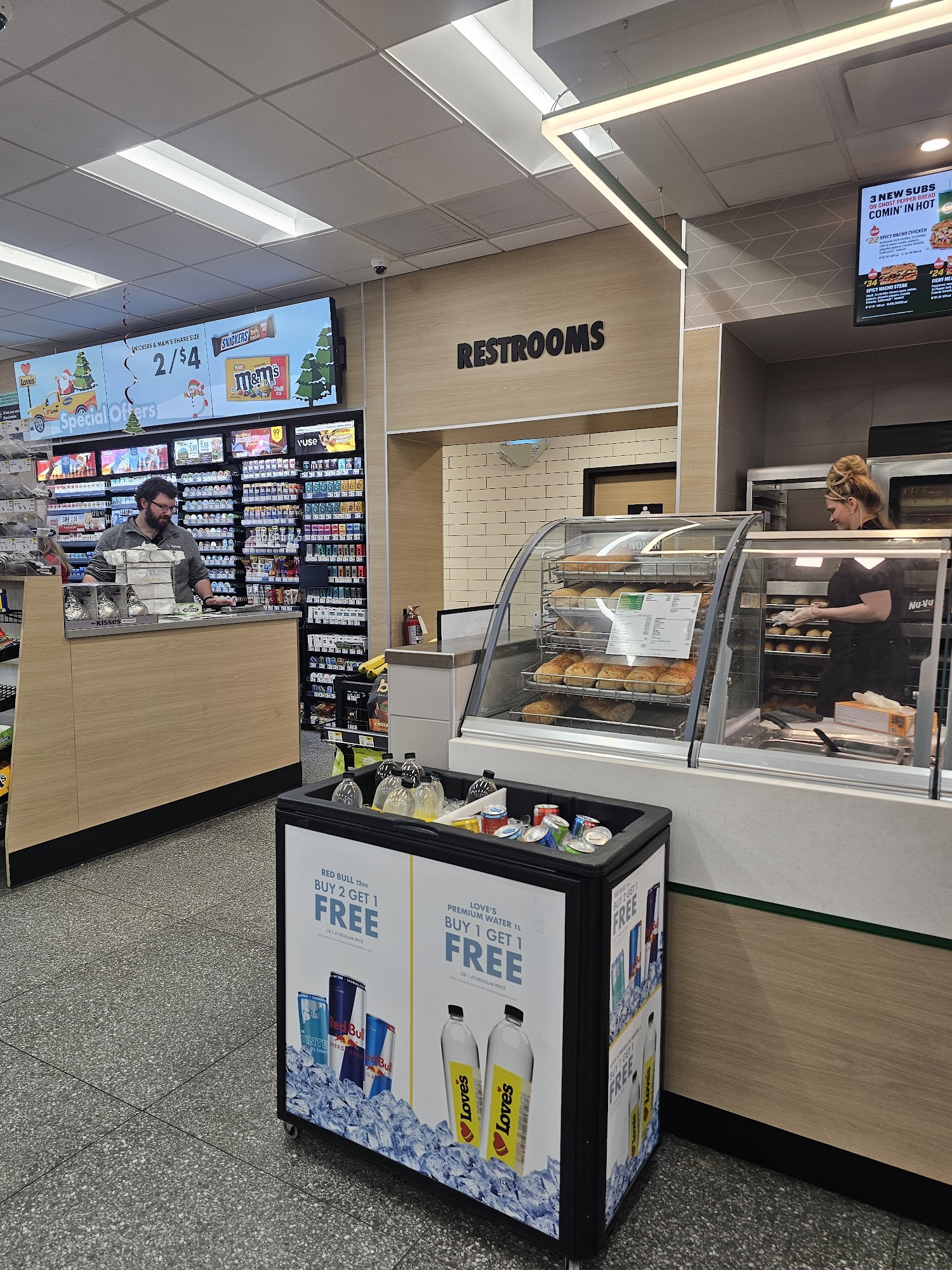 Located conveniently on I-40 at Exit 37, Love's Travel Stop provides friendly service, clean facilities, and a modern store. The location is great overall, with a Subway on-site and other food options within walking distance. The store is very clean, well stocked, tidy, and organized, with a bright interior and perfect, super clean bathrooms. The showers are also very clean, a nice size, with decent pressure and hot water. The staff are super friendly, helpful, and definitely care, with an amazing attitude even during early hours. They are passionate about keeping the store clean. The inventory is really great, including expected items and specialty products. The laundry room has newer, working machines. The parking lot is small with precious little truck parking, but it is not a deal breaker for a stop. This Love's is considered one of the better places to stop, with top-notch facilities and service that makes it the best loved store for many travelers.