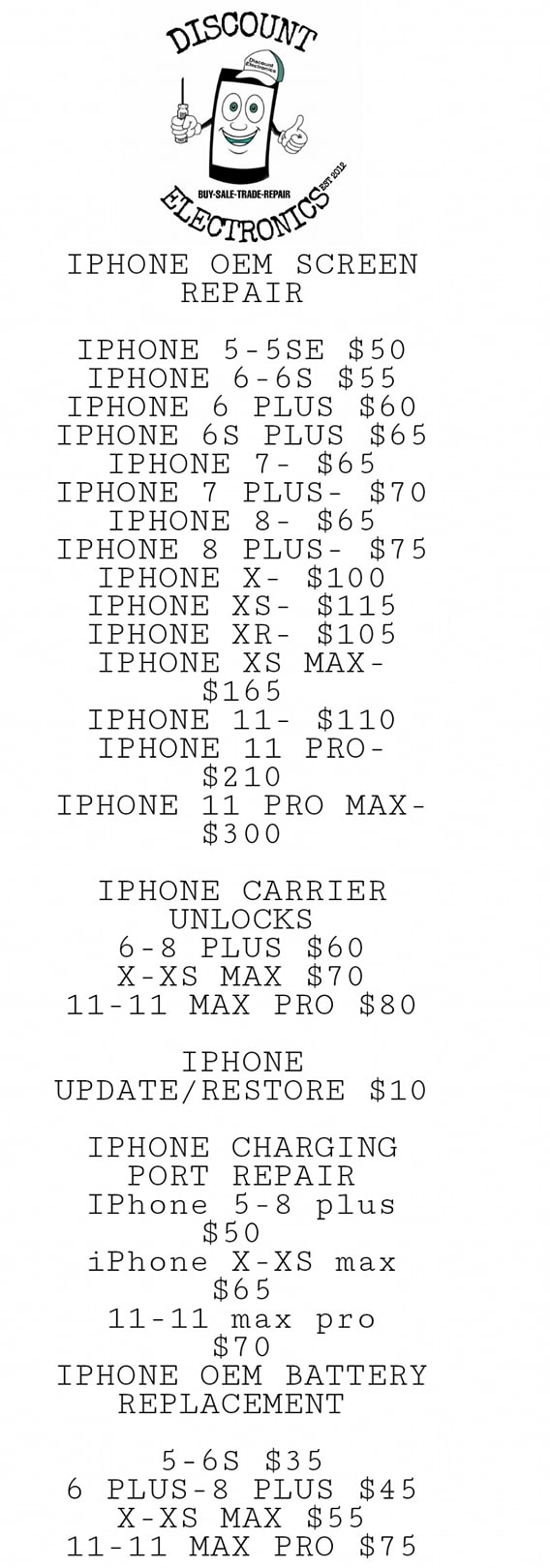 Got my IPhone XR screen fixed, the owner was very professional as was his staff. He had my phone done in a timely manner, he did it with expertise and precision will definitely continue to do business here.