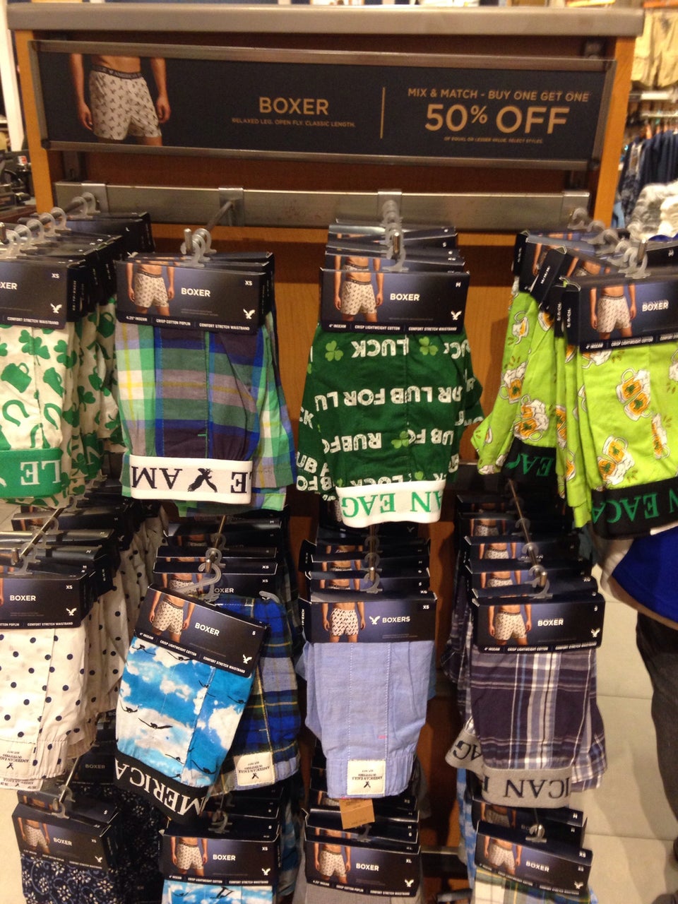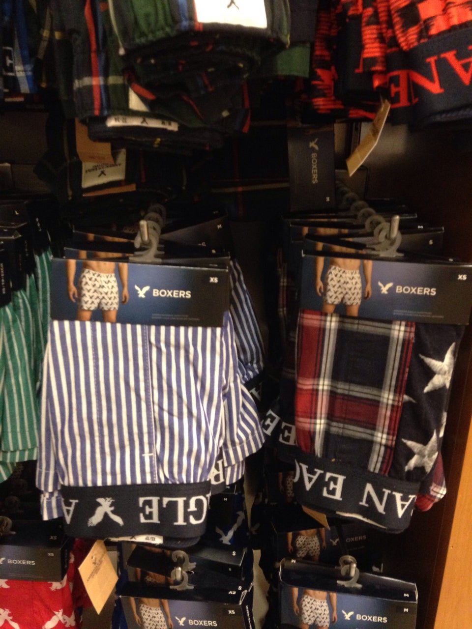 Decent men's selection and great staff. One employee who was managing the dressing rooms was very nice and on top of things, and the other was happy to help with a price check.