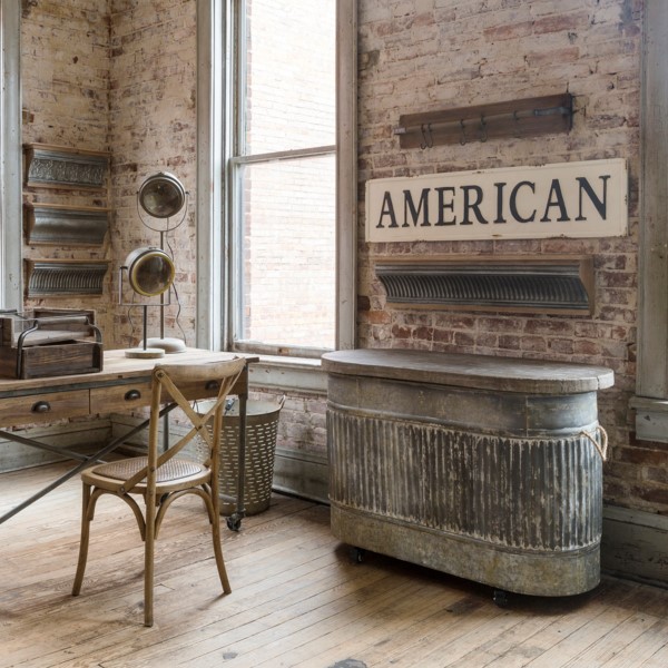 Rustic farmhouse, loft and industrial styles blended with curated antique linens and vintage glasswares create a harmonious home reflecting your individual style. General store kitchen storage and organization, farmhouse style mug racks, lighting, metal signs and home decor.