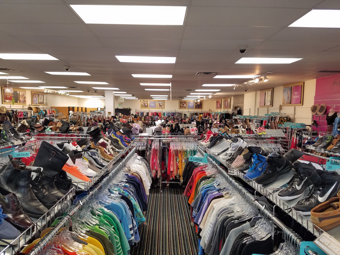I love the deals we find, but the clothes are so jam packed on the racks that you can't see anything and if you pull something out to see it, 4 other items come with it and two of those end up on the floor because the hanger stayed! Miserable shopping experience. It takes some solid muscle to get to anything.